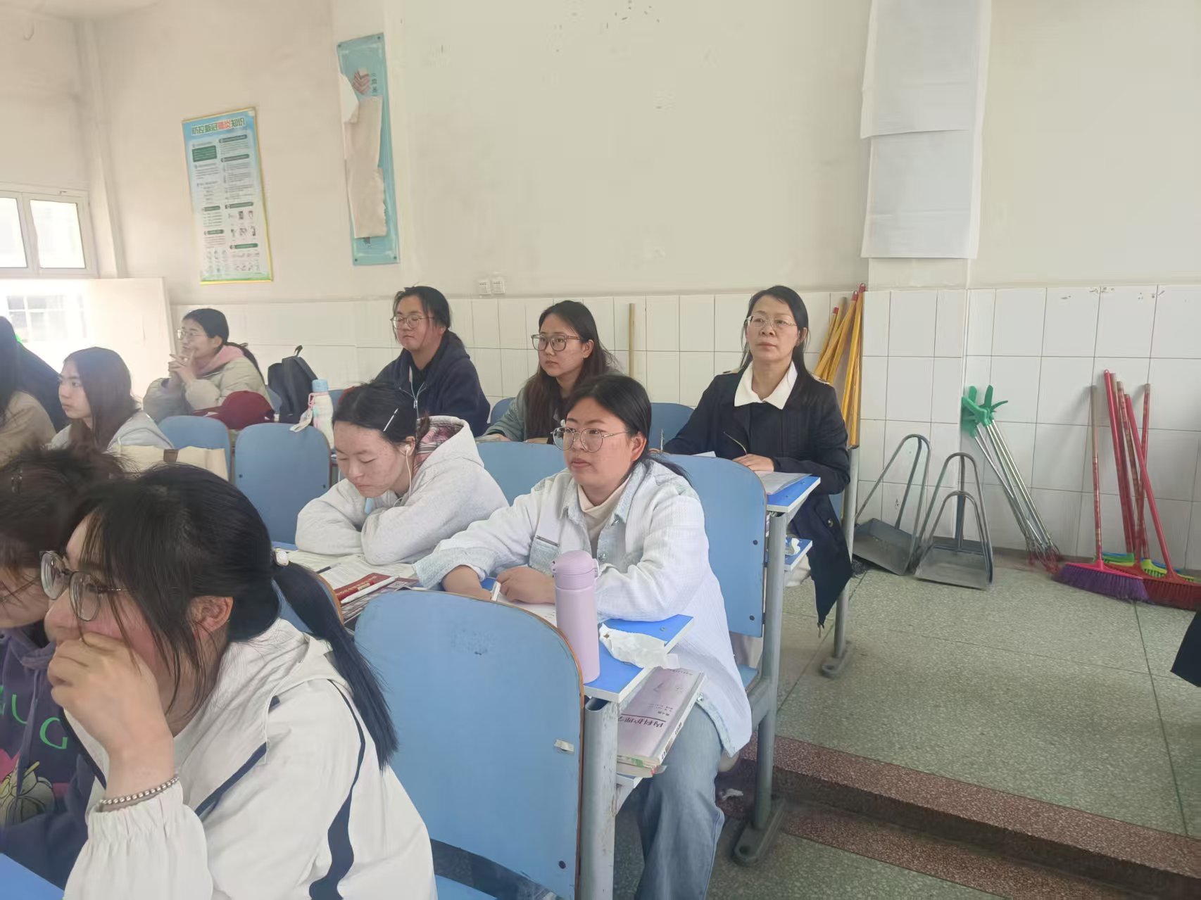 杜晓平先后在护理系、临床医学系、口腔医学系、康复医学系、国际教育学院课堂上认真听取了魏毅、陈萌、石保山、吴佳琦等思政课教师讲授的《习近平新时代中国特色社会主义思想概论》《思想道德与法治》《形势与政策》等课程。课堂上,教师们紧扣课程主题,运用生动的案例,理论联系实际,及时将新时代中国特色社会主义的丰富实践转化为课堂教学资源,充分展现了思政课教学活力与实效。