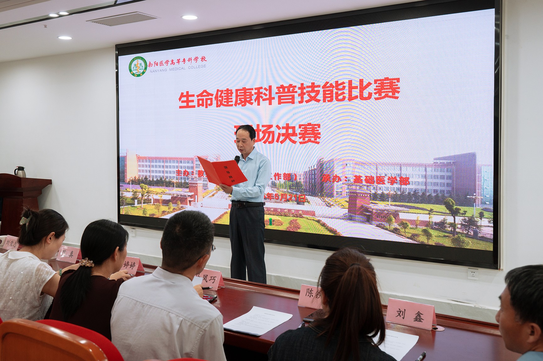 本网讯(文/基础医学部 姚银乐)5月21日,我校在仲景东区举办生命健康科学普及技能比赛决赛。校党委副书记、校长范真,校党委委员、副校长刘荣志出席,各系(部、院)师生代表参加。