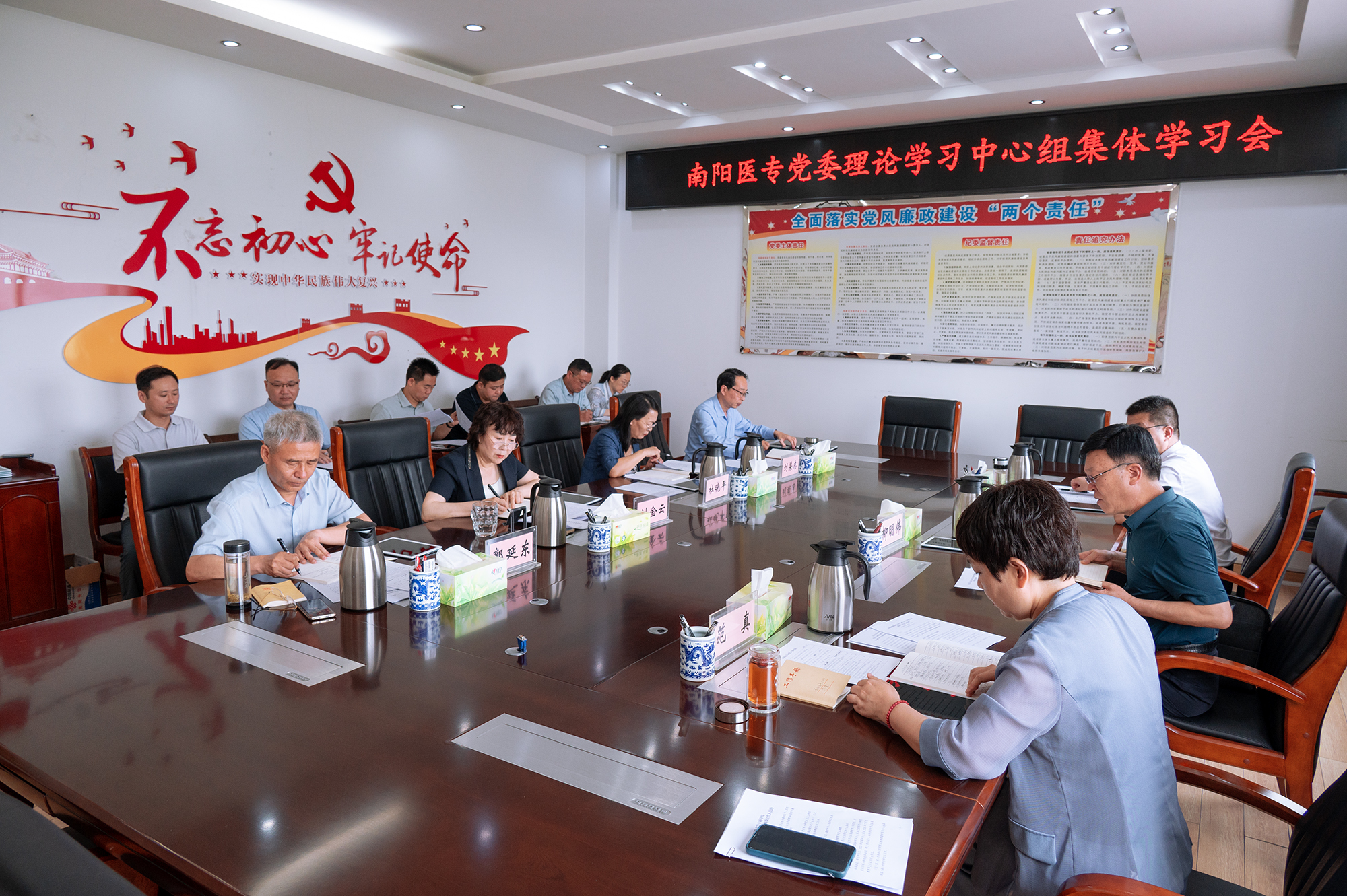 本网讯(文/宣传部 逯扬)5月30日,南阳医专党委理论学习中心组举行集体学习研讨,深入学习习近平总书记考察河南时的重要讲话精神,以及中央八项规定及其实施细则精神,旨在进一步深化思想认识、强化责任担当,为学校高质量发展、高效能治理提供坚强保障。校党委书记柳明伟主持会议并讲话。