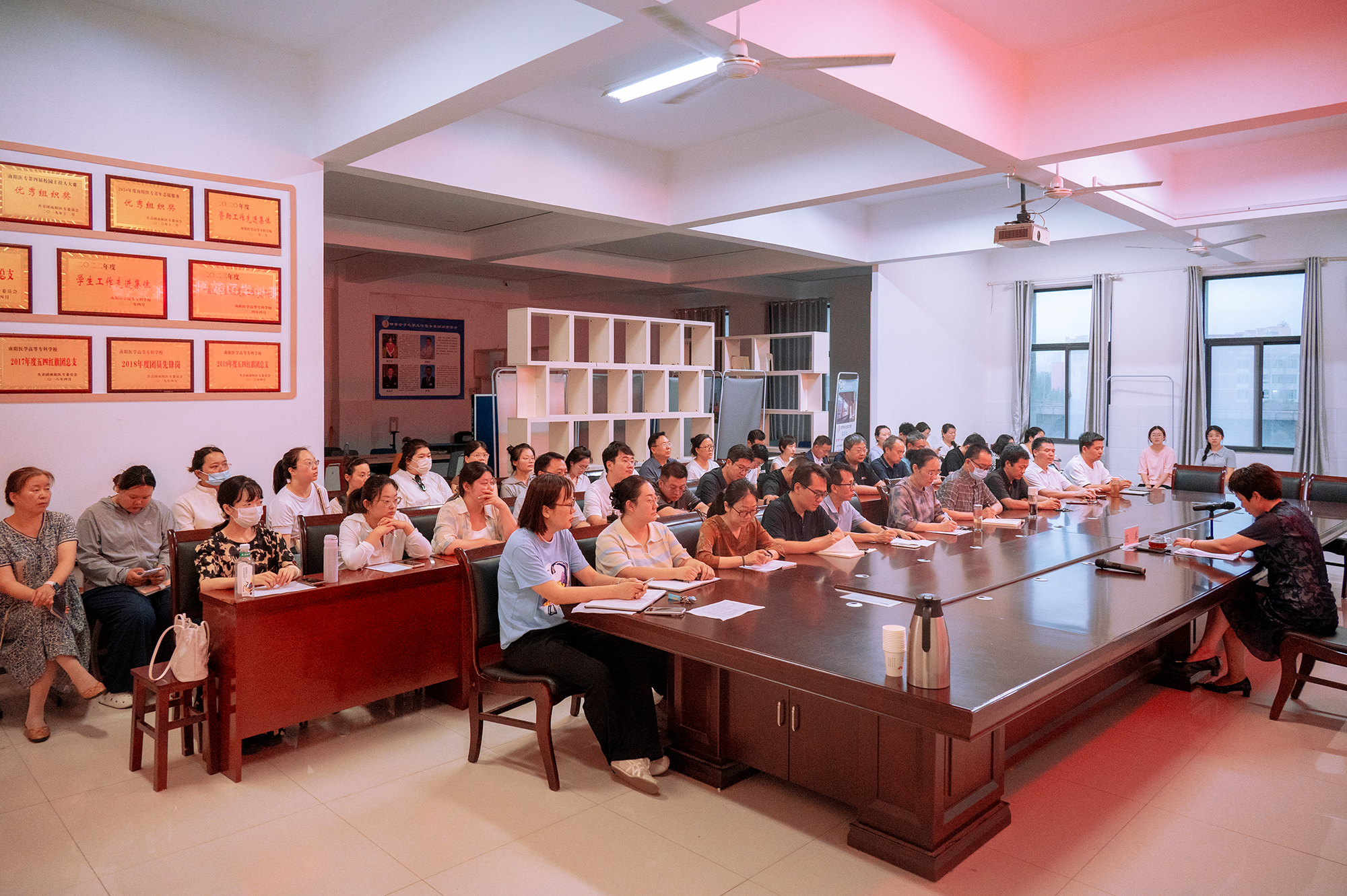 本网讯(文/中医系 刘元)6月18日下午,校长范真深入中医系讲授深入贯彻中央八项规定精神学习教育专题党课,中医系全体教职工、学生党员参加。党课由中医系党总支书记郭玉伟主持。