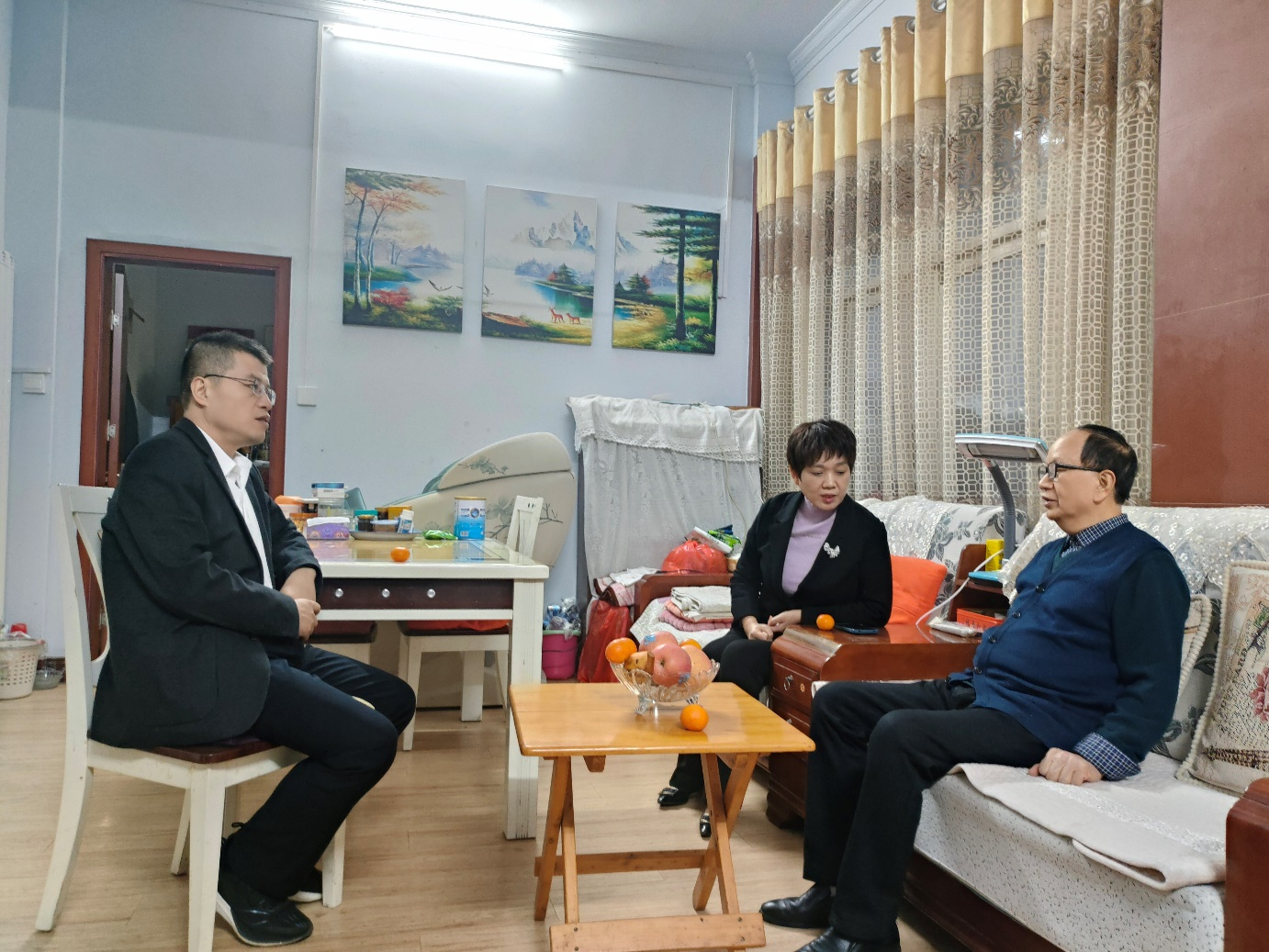 在走访慰问中,校领导与老领导、老同志们亲切交谈,询问他们的日常生活情况和身体健康状况,认真倾听他们对学校发展建设的意见建议。校领导表示,离退休老同志是学校发展历程的亲历者、参与者和见证者,曾为学校建设倾注大量心血、作出重要贡献,是学校宝贵的精神财富与智慧资源。学校真诚期盼老同志们能继续发挥经验优势,一如既往关心支持学校发展,积极建言献策、贡献智慧力量,与全校师生携手并肩,共同描绘学校高质量发展的美好蓝图。