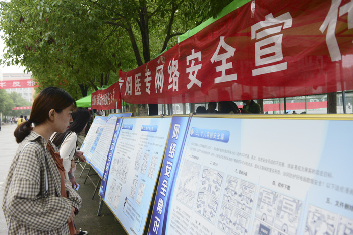 在9月18日网络安全宣传周校园日活动中,党委宣传部在校园主干道展出专题展板,图文并茂地展示了防电信诈骗、校园贷套路、电子邮件和无线网络安全使用注意事项等与大学生息息相关的内容,吸引了不少学生驻足浏览阅读。