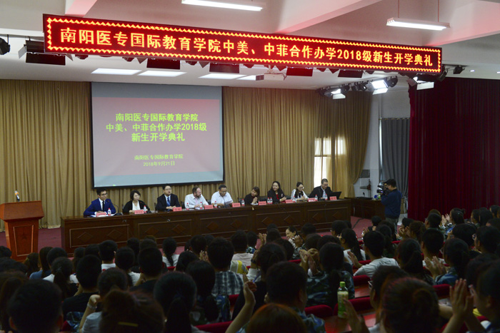本网讯(文/外事处 周国军)9月21日上午,我校举行与美国哈森大学、菲律宾伊密里欧学院3个国家6个中外合作办学项目的开学典礼,菲律宾伊密里欧学院副校长艾伦·塞拉克女士,美国哈森大学国际部部长瑞恩·莱蒙先生,日本大阪滋庆学园中国办主任吴伟先生出席典礼。会议由对外交流合作处处长、国际教育学院党总支书记张少羽主持。