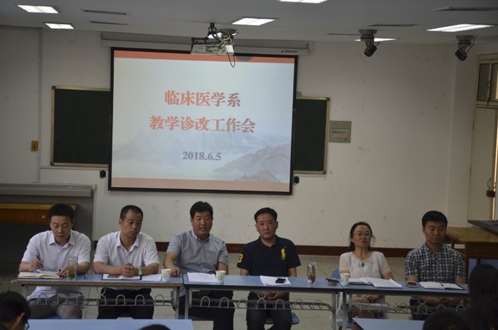 本网讯(文/临床医学系 王静)6月5日下午,临床医学系在4号教学楼2204学术报告厅,组织召开了教学诊改工作会。副校长郭万周出席,系领导、一附院医教科副科长张世荣,全系教职工参加会议。