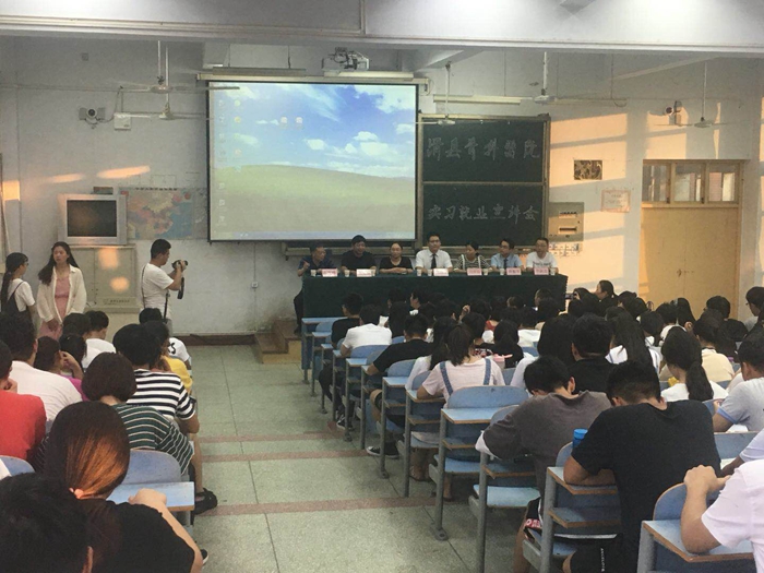 本网讯(文/针灸骨伤系 李明哲)6月12日晚,针灸骨伤系在1号教学楼南301教室举办实习就业专题宣讲会。安阳市滑县骨科医院骨伤科明海龙、唐盼娜、薛振华及疼痛科闫培培医师出席本次宣讲会。教务处副处长王春成、针灸骨伤系全体党政领导班子成员、辅导员和实习班班主任以及优秀学生代表、2017级安阳籍学生150余人参加会议。