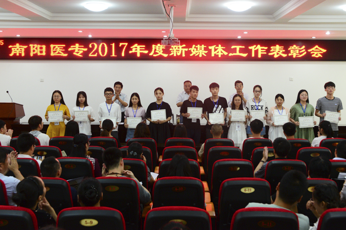 本次年度表彰评选主要依据各新媒体2017年度关注量、阅读量、推送作品量和“校园十佳新媒体投票”票数等数据,进行综合评议后认定。最终,南阳医专官方微信、医路花开(临床系)、仲景传人(中医系)、医技视界(医技系)、南阳医专图书馆微信、南阳医专天使摇篮(护理系)、南阳医专官方微博、南阳医专学生会微博、南阳医专校园之声广播站微博、南阳医专图书馆阅轩读书会微博等平台被评为十佳新媒体。党委宣传部、临床医学系、中医系、医学技术系、图书馆、护理系、校团委等被评为新媒体年度工作先进单位。(编审/李峰松 摄影/程安琪)