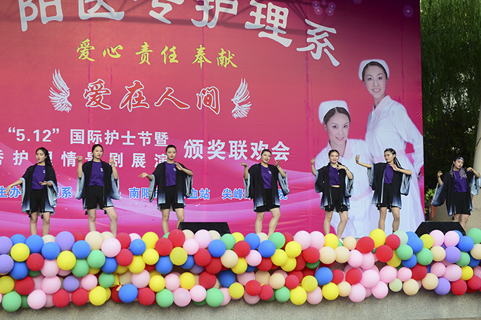 联欢会在护士授帽及宣誓仪式中拉开帷幕。同学们身着护士服,排着整齐的队伍,单膝跪地,由老师们为其戴上洁白神圣的燕帽,感受着白衣天使职业的崇高和伟大。接着,全体同学起立,举起右手,庄严地宣誓,在铮铮誓言中表达了自己不辱白衣天使神圣使命的决心。南阳市第一人民医院的一线护理工作人员表演的音乐情景剧《我们的工作和您想象的不一样》点燃了整个现场,深深诠释了护理工作者对生命的尊重和对责任的理解,歌颂了护理工作者不辞辛劳、救死扶伤的高贵品质。歌伴舞、诗朗诵、情景剧、瑜伽、健美操…….同学们用倾情的演出庆祝白衣天使自己的节日,抒发了对护理事业的热爱和忠诚。最后,联欢会在歌伴舞《共圆中国梦》中圆满落下帷幕。