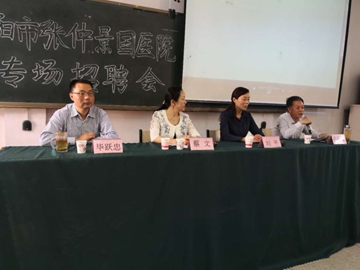 系主任孙欣峰致欢迎辞。他对市中医院来我校选拔优秀实习生、毕业生表示感谢,并向招聘人员详细介绍了学校在专业人才培养工作中的具体情况。接着,市中医院人事科刘平科长做了讲话,她围绕市中医院的建设现状和发展前景向在座师生做详细介绍,并针对医院的人才引进、培养政策,工作人员职业素养要求等进行了解读。她鼓励全体学生要勤于学习,甘于吃苦,奋发向上,力争上游,争当满足社会需要的优秀人才,并引领全体师生共同观看了南阳市中医院宣传片。随后,医教科蔡文老师向在座师生展示了市中医院小儿康复病区的概况,并重点介绍了中医特色疗法的临床应用情况。她鼓励大家要继承和发扬中医诊疗特色,树立培养良好的职业发展信念和专业认同感,切实在自己的岗位上不忘初心,不懈奋斗,为祖国医药卫生事业的发展做出贡献。最后,市中医院两位老师现场与全体学生进行了交流,并就学生关心的问题进行了耐心细致的解答。
