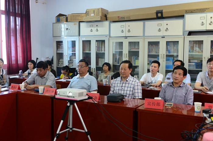 本网讯(文/政教部李建效)为帮助广大思政课教师更好地把握高校思想政治理论课2018年版教材的主要内容和基本精神,切实用好新教材,根据教育部、省教育厅《关于组织参加高校思想政治理论课2018年版教材使用培训的通知》要求,学校在政教部会议室设置了全国高校思政课2018年版教材使用远程视频培训分会场。校长方家选、副校长逵应坤,党办、宣传部、教务处负责人及政教部全体专兼职教师参加了5月14日下午教育部组织的开班仪式。