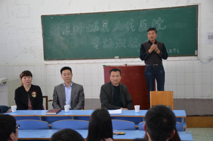 本网讯(文/临床医学系 王川)3月27日下午,我系在4号教学楼503教室举办了新疆叶城县人民医院专场招聘双选会。叶城县人民医院副院长吴兴舟、人事科主任佟丽敏,校学生处副处长、就业服务中心副主任李金里参加会议,100余名学生参会。会议由系副书记张立润主持。