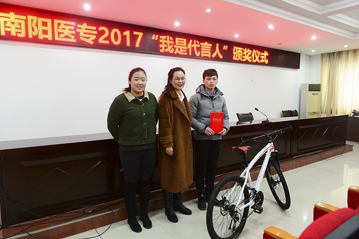 校党委宣传部部长王永科首先向获奖选手表示热烈祝贺,向南阳晚报和各赞助单位的大力支持表示衷心感谢。他指出,本次“代言人”大赛是我校校园网络文化建设的一次很好探索与尝试,大赛的成功举办既体现了各系(部、院)高效的工作效率和团结协作、拼搏进取的医专精神,也展现了当代医学生的青春活力和昂扬向上的精神品质,树立了学校的良好社会形象。这既是一次评选活动,也是一次宣传教育活动,是一种潜移默化的教育方式,是一种激励我们前进的主旋律、正能量。他勉励获奖同学们,既要树立远大理想,更要脚踏实地,不放过每一个锻炼成长的机会,用中国梦激扬青春梦,不断实现自我、超越自我,成为一名出色的“医学代言人”!