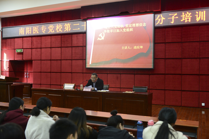 本网讯(文/组织部 刘萍)11月28日下午,南阳医专党校第二十四期入党积极分子培训班,在主校区图书馆五楼多媒体会议室举行开班典礼。校党委副书记逵应坤,党委组织部部长、党校副校长张浩,校长办公室主任、党校校务委员江学法及部分涉学系部党总支和带队老师参加了开班典礼。开学典礼由张浩主持。