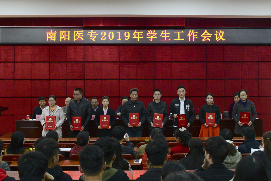 大会对2018年度学生工作、征兵工作、就业创业工作、资助工作先进集体和个人进行了颁奖,还对2018年河南省第七届辅导员素质能力大赛一等奖获奖选手刘怀东、省辅导员精品项目主持人田雨和学校优秀辅导员、班主任代表颁了奖;护理系主人吕云玲和临床医学系党总支书记秦玖刚先后作了典型发言。
