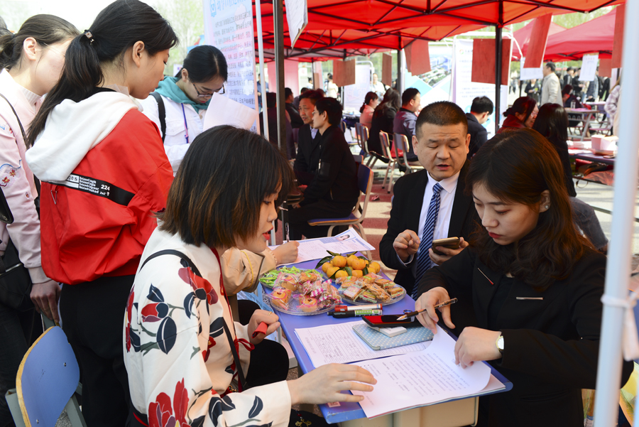 为办好此次招聘,副校长郭万周主持召开了供需见面会协调会,按照任务分工,各相关部门组织得力、行动迅速,为办好此次就业招聘会提供了有力保障。就业中心首次运用“工作啦”高校精准就业智能移动平台进行用人单位参会报名,不仅提高了报名效率,也方便了招聘单位的资格审查。通过南阳医专毕业生就业信息网站、微信公众号、现场张贴等途径对单位座次安排情况进行提前公布,取消了现场登记的环节,由学生志愿者分包到单位的原则进行现场登记、审核,大大提升了招聘效率。