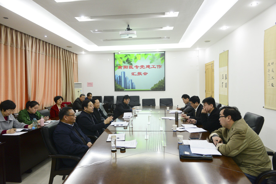 校党委副书记逵应坤同志代表学校党委就学校党建工作总体情况、班子及中层队伍建设情况、存在问题和建议等方面进行了汇报。全新明书记就如何把握党委领导下的校长负责制谈了自己见解,就如何抓好学校意识形态安全和校园安全稳定工作交流了自己的理解和体会,又畅谈了南阳医专的办学优势。最后,指出了我校中长期的党建工作机制,以党的建设高质量促进学校发展高质量这一顶层设计,各系(部、院)以培养双师双强双带为抓手,高质量开展党建工作以有力促进学校高质量发展。与会校领导,还就学校党建和干部队伍建设等方面提出了建议。李恒德部长对学校的发展和党建工作给予了肯定,尤其对我校提出的以党的建设高质量促进学校发展高质量的理念和工作机制,给予充分的肯定和关注。他指出,这将是医专的品牌,在这一理念的指导下,学校的各项工作已经初见成效,坚持下去,日臻完善,必将促进学校各项事业更好更快发展。并为我们下一步工作提出了殷切希望:希望把我校党建工作做强做好成为我市党建工作示范点;希望我们进一步深化内涵建设,提升核心竞争力,努力争创全国文明单位;希望我们加强对附属医院的领导,形成校本部到附院的示范带,把党建成果在学校和附院都亮起来。