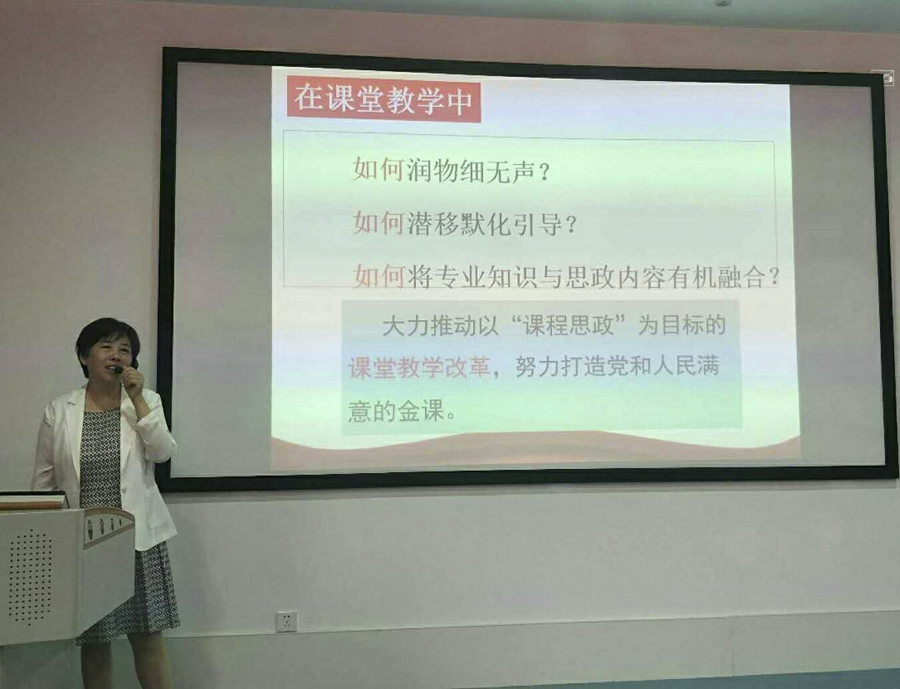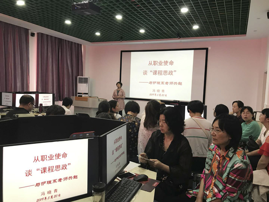 本网讯(文/护理系 李明哲)为促进教师更好的履行立德树人职责,进一步推进课程思政建设,提高人才培养质量,按照《护理系关于开展“课程思政”和“思政育人”研讨活动的工作方案》要求,继4月份各教研室先期开展“课程思政”教研活动的基础上,5月31日下午,护理系召开了“课程思政与思政育人”专题培训会,政教部主任冯晓青和护理系主任吕云玲分别为全系教师进行了专题培训。