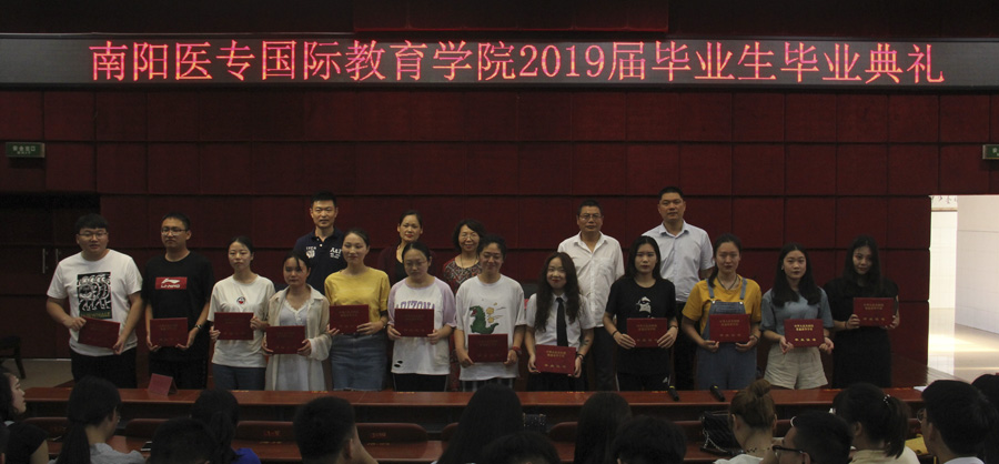 范卫杰宣读河南省教育厅关于表彰2019年河南省优秀应届大专毕业生的决定和VK电竞(中国),亚洲电竞先驱国际教育学院准予2019年应届毕业生的决定。李连焕介绍国际教育学院2019届毕业生的整体情况,本届毕业生558人,有11人获得省级优秀毕业生、三好学生和优秀学生会干部,79人通过专升本,33人投身“三支一扶”锻造火热青春。李弋希望大家谨记校训,做一个医德高、医术精,受人尊敬的人。希望大家常会母校看看。院领导给优秀毕业生颁奖。