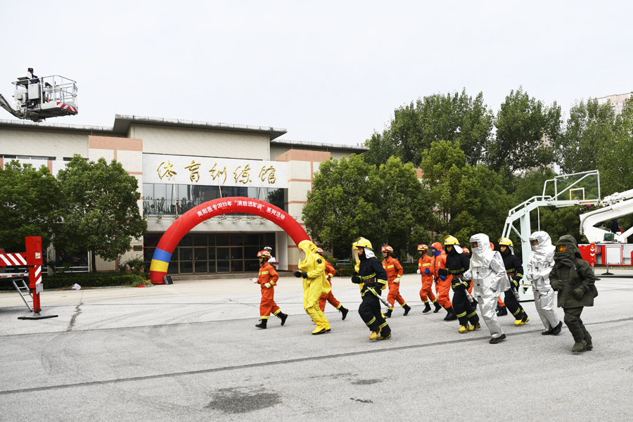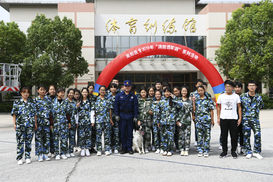 本网讯(文/保卫处 张明立)为深入贯彻落实《河南省教育厅办公室关于进一步加强全省教育系统消防安全工作的通知》,提高我校新生消防安全素质和自防自救能力,学校保卫处邀请南阳市消防支队、南阳市消防特勤中队,于9月20日在主校区开展了“消防进军训”系列活动。我校6000多名新生及部分教职工参加了培训演练。