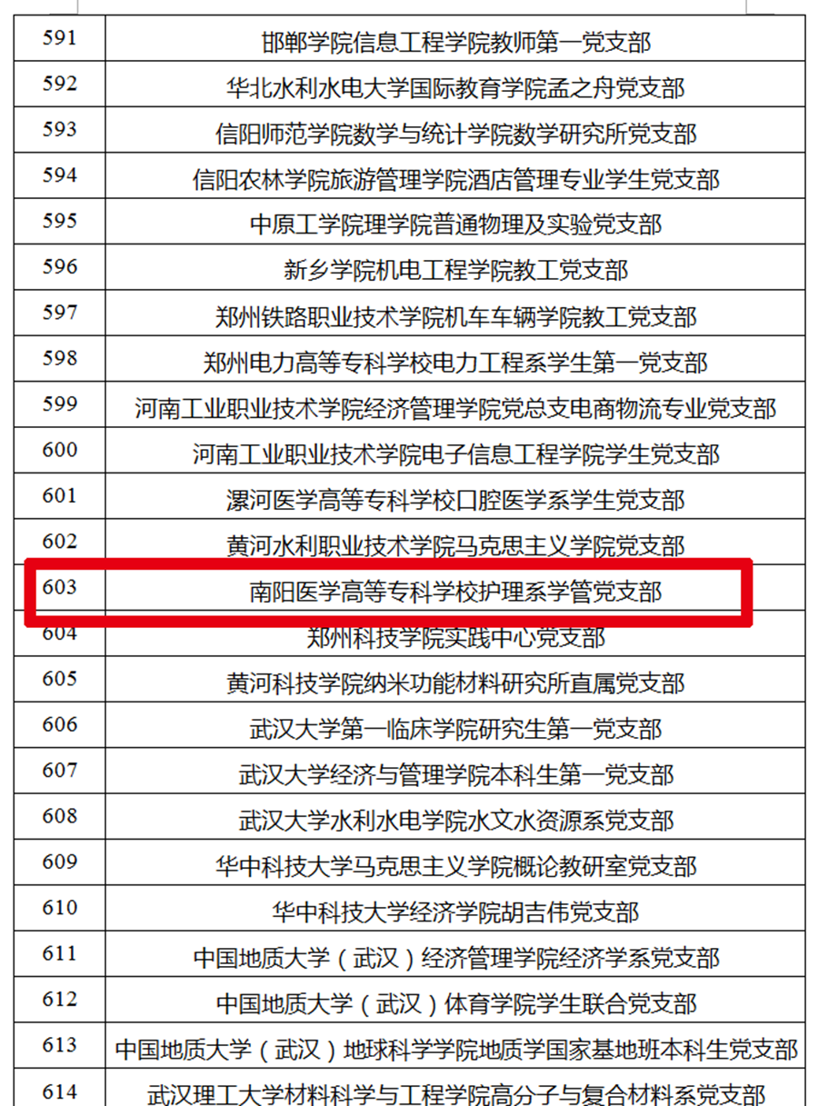 本网讯(文/宣传部 程安琪)根据《教育部办公厅关于开展第二批新时代高校党建示范创建和质量创优工作的通知》(教思政厅函〔2019〕15号,安排和评审工作方案,经资格审查、专家推荐、教育部党的建设和全面从严治党工作领导小组成员单位集中审议,结果公示,遴选产生10个高校党委、99个院系党组织、999个党支部分别作为全国党建工作示范高校、标杆院系、样板支部培育创建单位。我校护理系学管党支部荣获第二批“全国党建工作样板支部”。