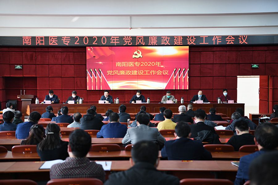 本网讯(文/校纪委 王琼)4月8日下午,我校在图书馆五楼学术报告厅召开2020年党风廉政建设工作会,传达贯彻十九届中央纪委四次全会、十届省纪委五次全会、六届市纪委五次全会和全省教育系统党风廉政建设工作部署,推进学校全面从严治党向纵深发展。南阳市纪委监委派驻市卫健委纪检监察组副组长付丽蕊出席会议并讲话,校党政班子成员、校本部中层正副职三所附属医院主要领导参加会议校纪委书记张国良同志作题为《履职担当尽责 强化监督执纪为学校两个高质量发展提供坚强保证 》的工作报告。