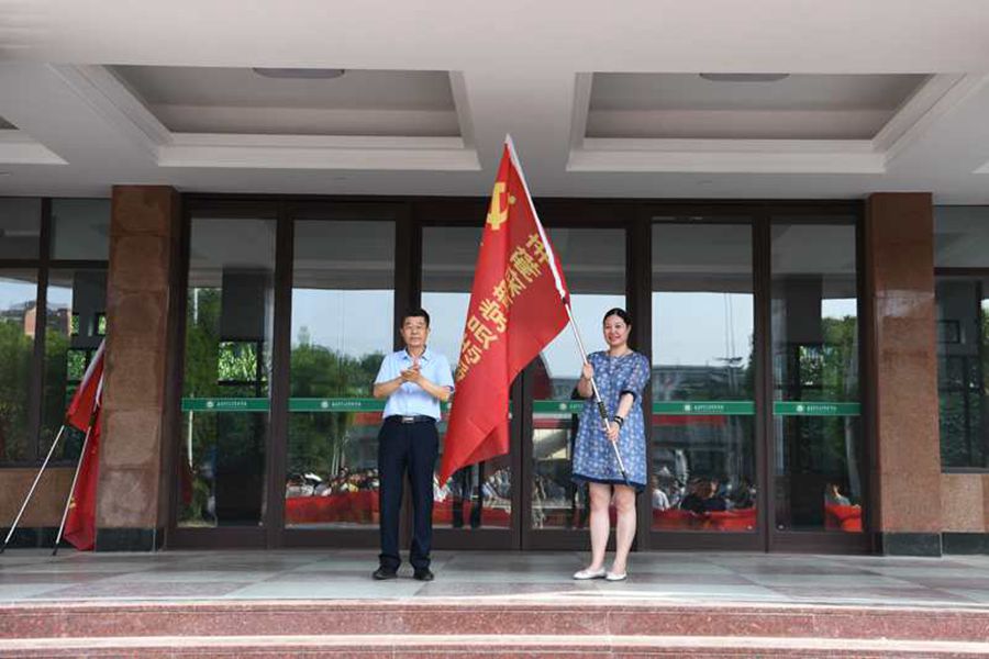在7月6下午,机关三、五、七支部和保卫处直属支部联合举行“牢记初心使命、争当出彩先锋”主题党日活动启动仪式,党委委员、副校长张国良和郭万周分别为党员志愿服务队、车辆保障党员志愿服务队、后勤保障党员志愿服务队、学生工作党员志愿服务队、交通管控党员志愿服务队授队旗。在这次活动中,68名党员高擎志愿服务队旗,顶烈日,战酷暑,全程跟踪服务,让党旗在助考一线高高飘扬,充分发挥了党员的先进模范作用。(编审 李峰松)