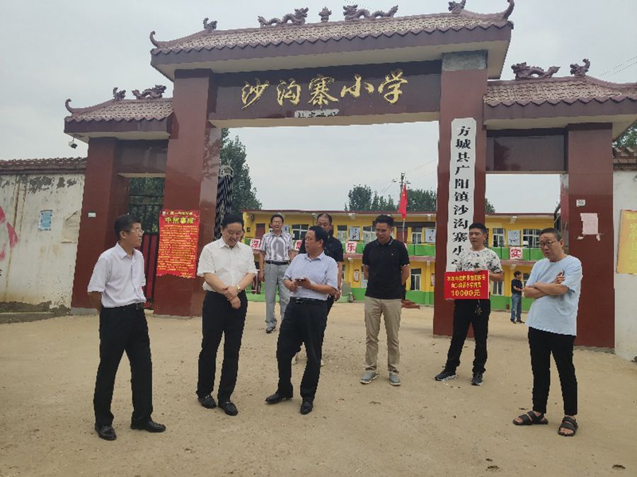 本网讯(文/党办 刘辉)2020年9月9日上午,在第36个教师节即将来临之际,校党委书记全新明到学校对口扶贫点方城县广阳镇官坡岭村陈庄小学和沙沟寨小学开展教师节走访慰问。党委委员、副校长张国良,党委委员、工会主席田端,广阳镇副镇长李天磊以及驻村干部、学校相关处室负责同志陪同前往。