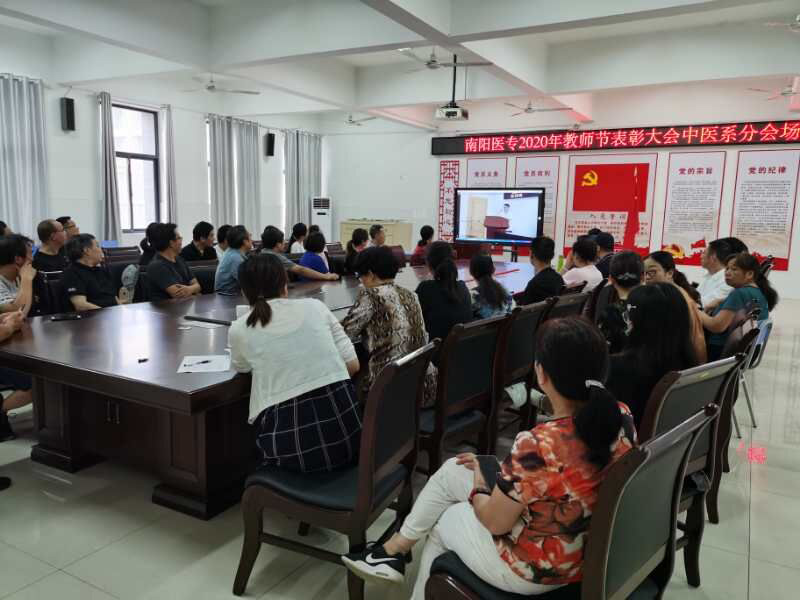 本网讯(文/行政办 毕大鹏)为庆祝第36个教师节的到来,9月9日下午3:00,学校采取线上主会场和线下分会场相结合的形式,隆重举行了2020年教师节表彰大会。大会主会场设在仲景西区1号办公楼5楼会议室,校领导全新明、逵应坤、张胜海、郭万周、范真、刘金云同志出席会议;优秀教师代表以及各相关处(室)、系(部、院)的负责同志参加会议。分会场设在各系(部、院),参加人员为全体专兼职教师、全体辅导员。其他党政和后勤教辅部门人员在各自办公室通过手机钉钉群直播进行了观看。会议由党委副书记逵应坤同志主持。
