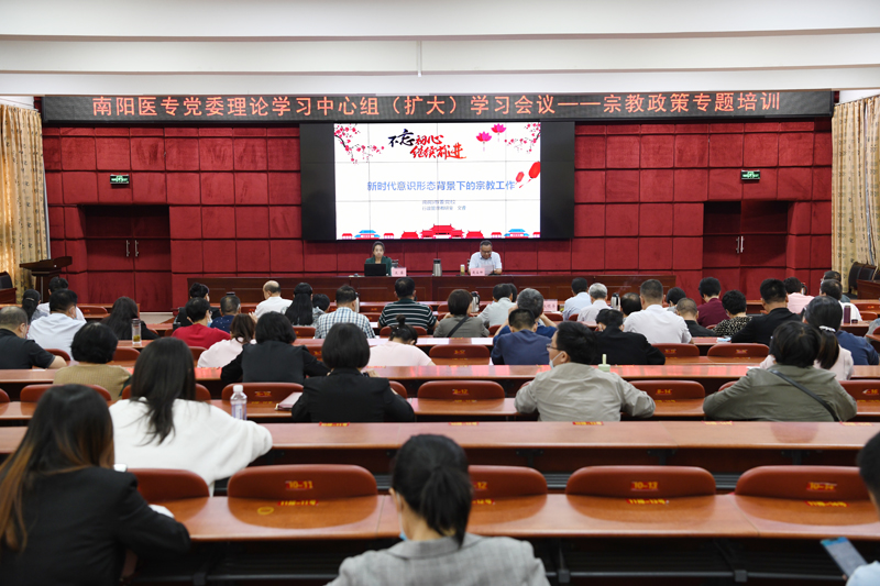 本网讯(文/党办 王萍)9月29日下午,我校召开党委理论学习中心组(扩大)会议,对民族宗教政策法规进行专题学习和培训。特别邀请了南阳市委党校行政管理教研室文睿教授做专题辅导。校党委副书记逵应坤主持会议。学校党委理论学习中心组成员,校本部中层正职干部和临时负责工作的中层副职干部,思政课专职教师,全体辅导员,各系(部、院)党支部书记及统战委员,三所附属医院党组织书记、分管院领导及统战专干参加了会议。(编审/杨金运 摄影/宣传部)