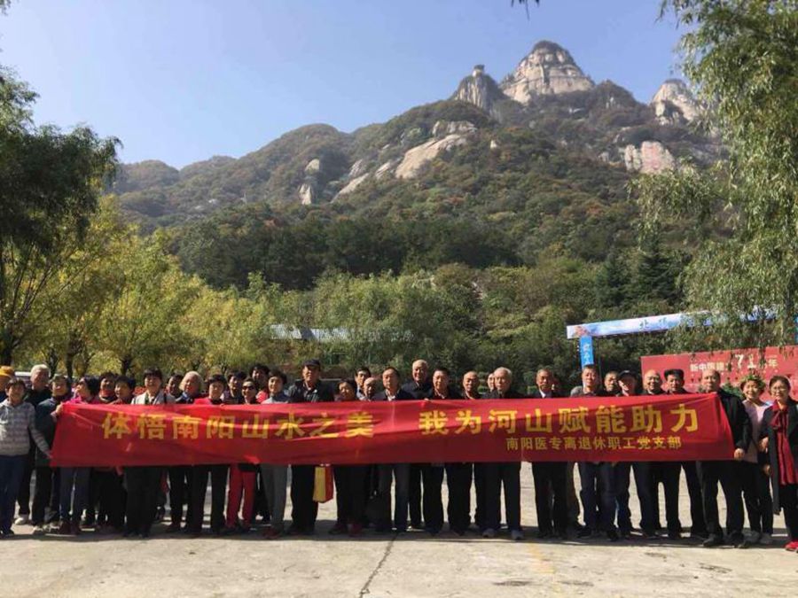 10月23日上午,南阳医专退休职工80余人兵分二路,早早来到五朵山、丹江和渠首等地,深秋的南阳山水,层林尽染,生机盎然。醒目的横幅展示出了这次登高活动的主题,“体悟南阳山水之美、我为河山赋能助力”。山林里、渠首旁、丹江边,身着红色志愿服的老人们结伴而行,捡拾路边丢弃的塑料袋、水瓶等垃圾,用实际行动守护青山绿水,感召游客们在尽情享受青山绿水的同时,更要携起手来,共同保护好南阳的三山三水。