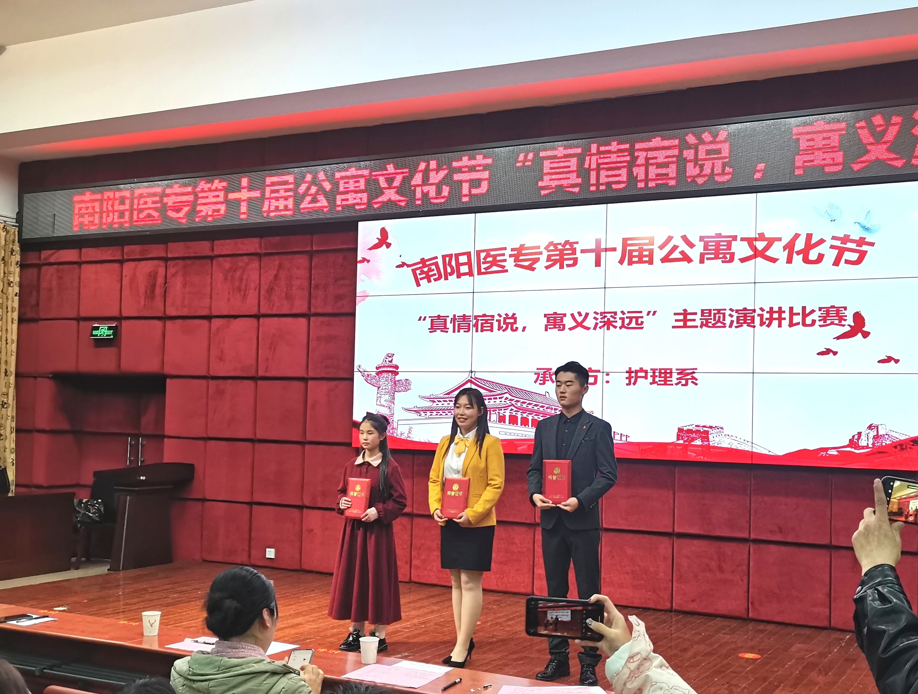 本网讯(文/护理系 闫珂)为大力加强大学生公寓精神文明建设,营造积极健康的学生公寓文化氛围, 进一步强化学生公寓“管理育人、服务育人、环境育人”的功能,12月9日下午,由护理系承办的我校第十届公寓文化节“真情‘宿’说,寓义深远”演讲比赛在图书馆五楼举行,校宣传部、团委、学生处的有关领导和老师担任了评委。