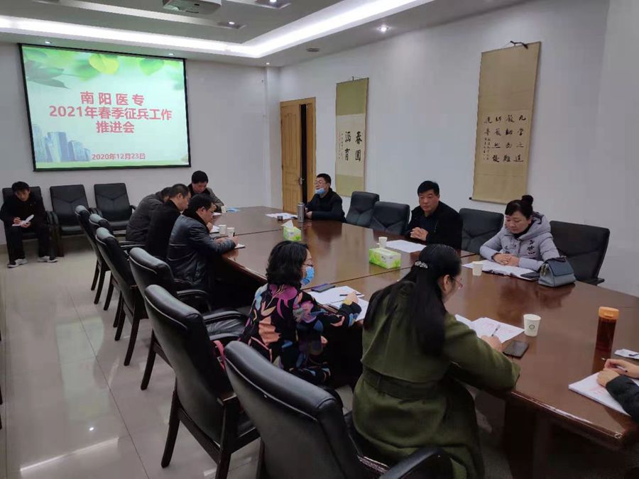 本网讯(文/学生处 皇甫乐观)12月23日下午,我校在行政楼2号会议室召开2021年春季征兵工作推进会。学校党委委员、副校长郭万周出席,武装部部长梁顺平、副部长余飞海及各系院书记、副书记、学工办主任和征兵专干参加会议。会议由武装部部长梁顺平主持。