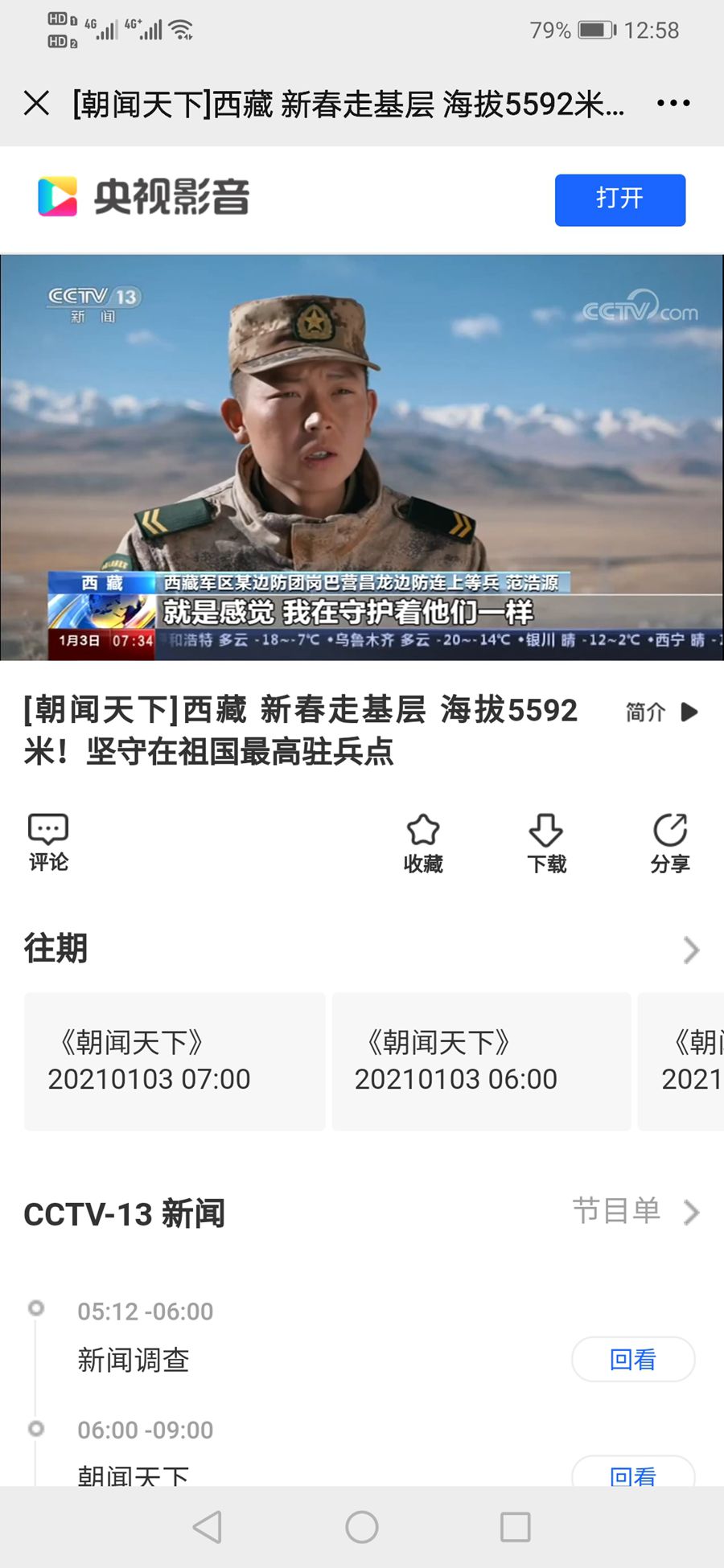 本网讯(文/临床系 张立润 学生处 余飞海)2021年1月3日,中央电视台《朝闻天下》、《人民日报》、人民网等多家媒体纷纷报道了“坚守在被称为极限禁区海拔5592米祖国最高驻兵点”的西藏某边防团哨所的先进事迹,画面中正在观察哨执行观察任务的上等兵范浩源是南阳医专临床医学系2017级口腔1班入伍学生。