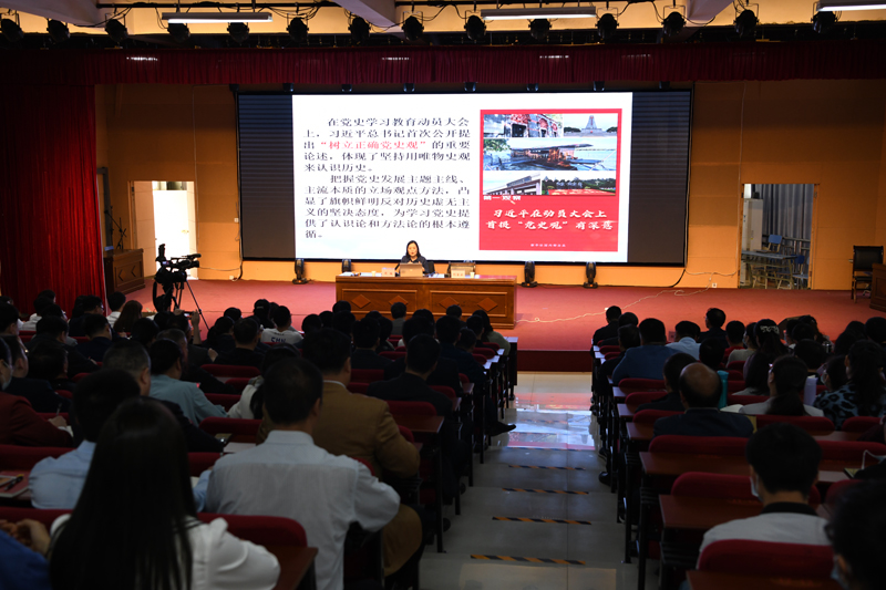 本网讯(文/宣传部 李峰松)4月30日,我校在仲景东区报告厅召开党委理论学习中心组(扩大)党史学习教育宣讲报告会。在家领导班子成员出席,校本部副科级以上干部、辅导员、思政课教师、三所附院班子成员、2021年度青马学院全体学员、2021级中医本科班学生代表和针骨系入党积极分子学生代表参加报告会。会议由纪委书记刘金云主持。