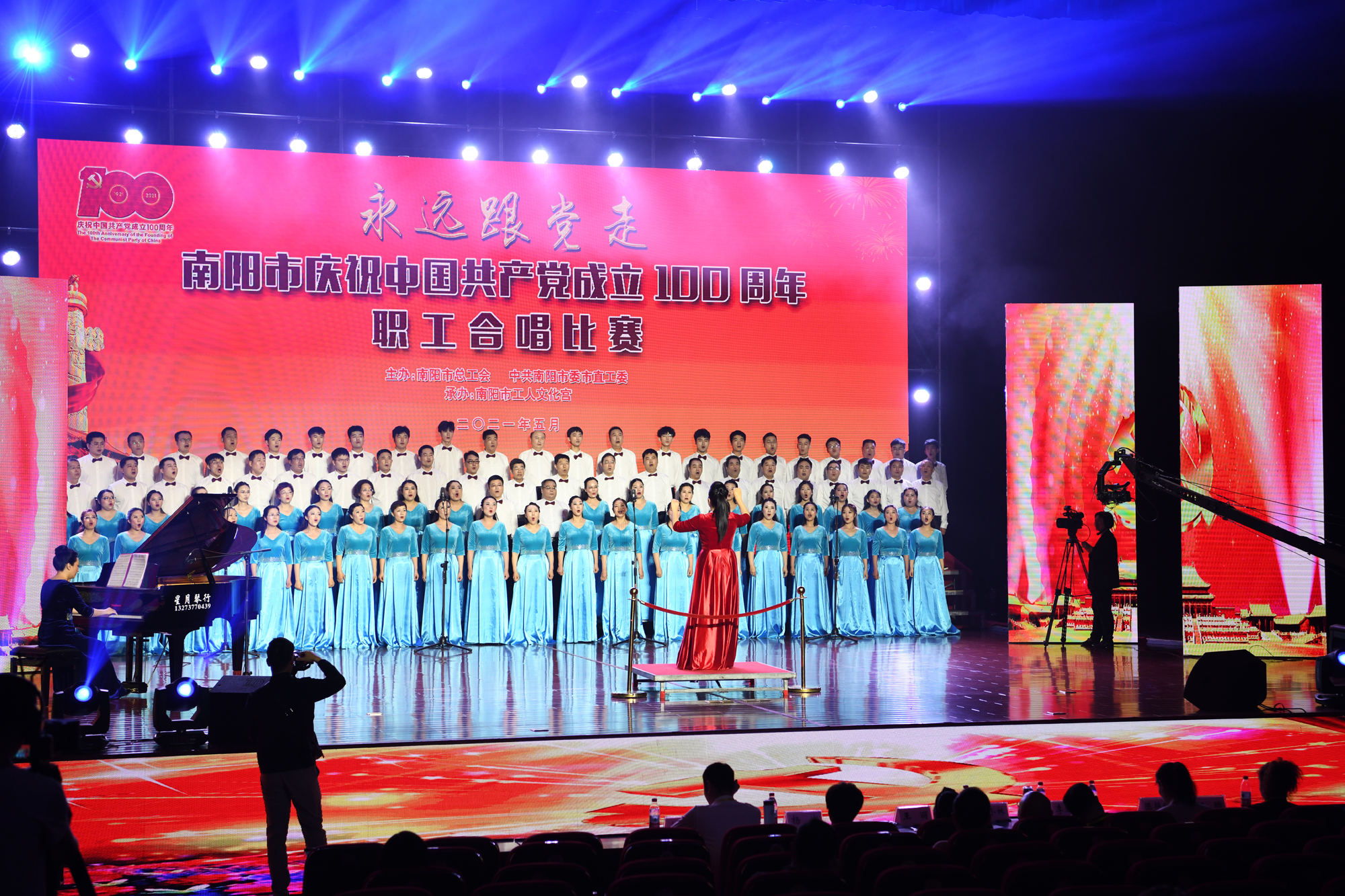 本网讯(文/校工会 朱东民)5月20日,南阳市总工会、市委市直工委举办“永远跟党走”南阳市庆祝中国共产党成立100周年合唱比赛,来自市直的三十一支代表队参赛,我校参赛曲目《没有共产党就没有新中国》荣获二等奖。
