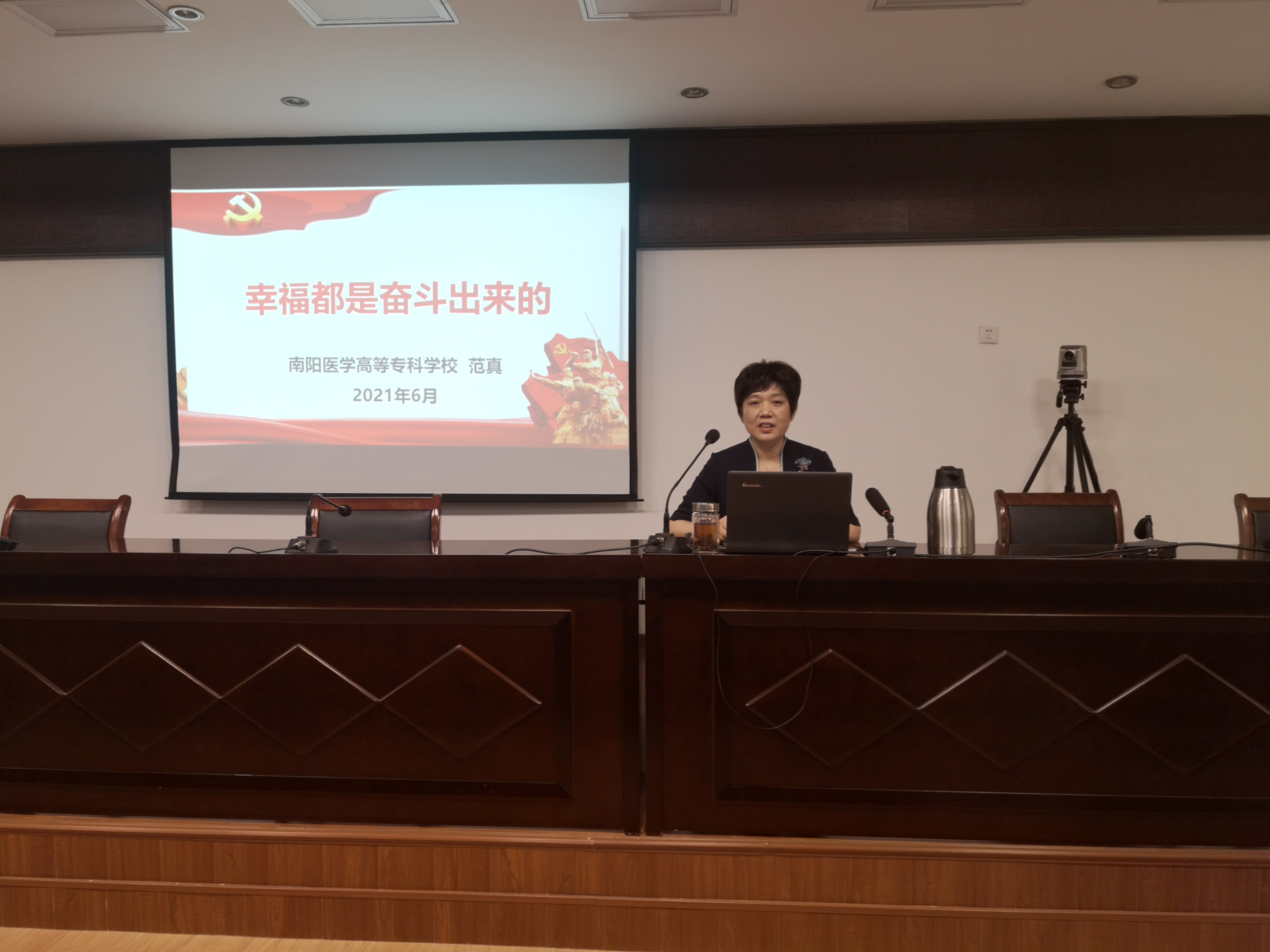本网讯(卫生管理系 董菡)6月1日下午,在一号行政楼五楼会议室,副校长范真以“幸福都是奋斗出来的”为题,为卫管网络党总支师生上了一堂生动的党课。卫管网络党总支部分党员教师、学生预备党员和卫管系一百余名学生参加了本次党课学习。