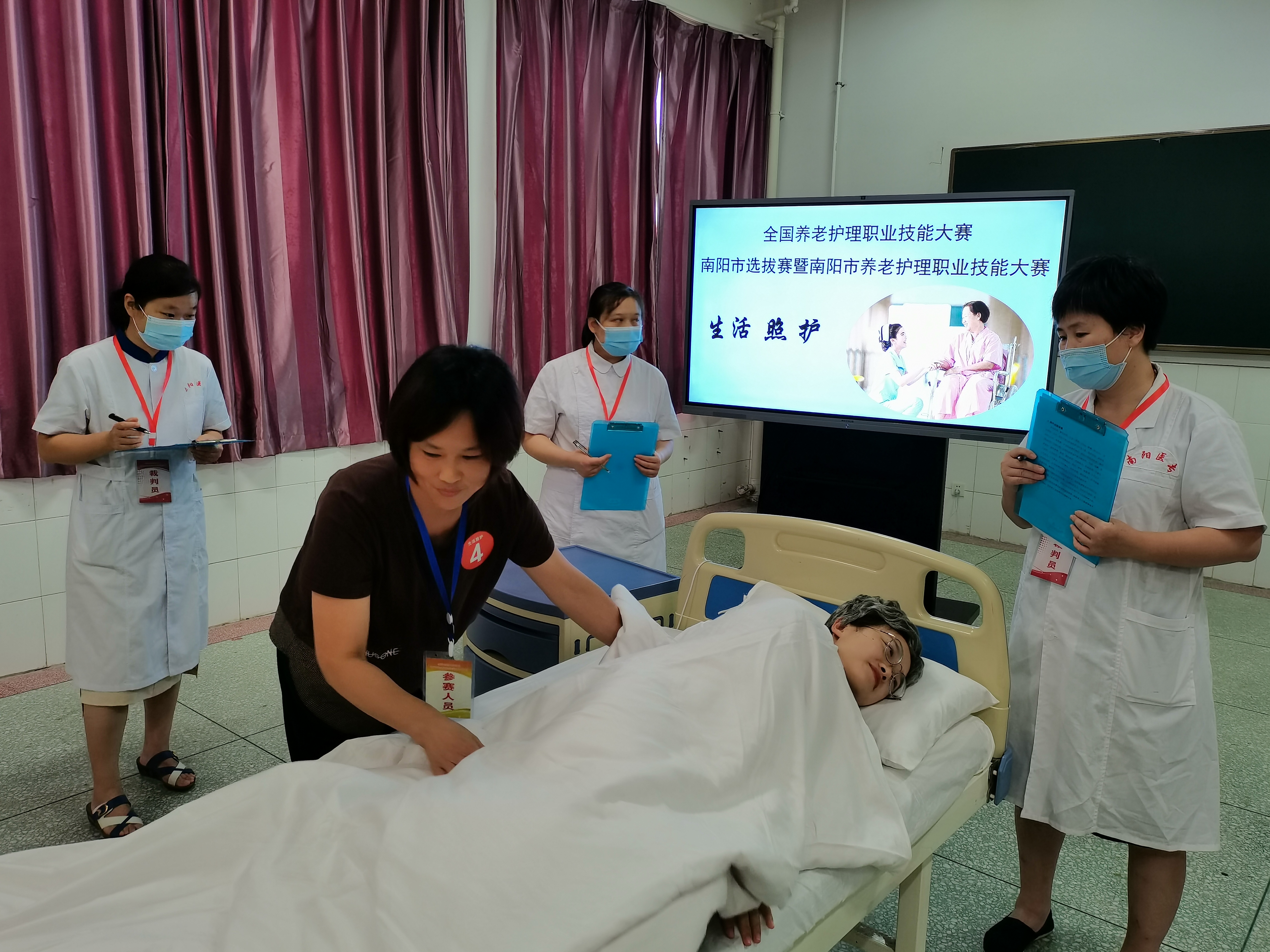 本网讯(文/护理系 李明哲)为加强养老服务人才队伍建设,推动养老服务高质量发展,7月23日,全国养老护理职业技能大赛河南省选拔赛暨南阳市养老护理职业技能大赛在我校举行。本次大赛由南阳市民政局、南阳市人力资源和社会保障局联合主办,由南阳医专承办。