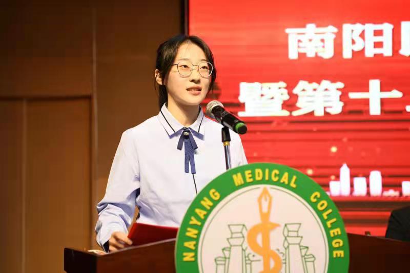 药学系吴立明老师代表教师发言。她首先介绍了医圣张仲景的伟大成就,希望同学们继承张仲景崇仁厚德的仁爱情怀,以不懈的探索精神、求实精神、创新精神、实践精神,刻苦钻研、勇于实践,早日成为“厚德、恒志、精术、济世”的优秀仲景学子。她勉励大家,要志存高远,做有抱负的新时代有为青年;求实创新,做勇于探索的新时代有为青年;厚植家国情怀,做有担当的新时代有为青年,为人类生命健康做出新的更大贡献!