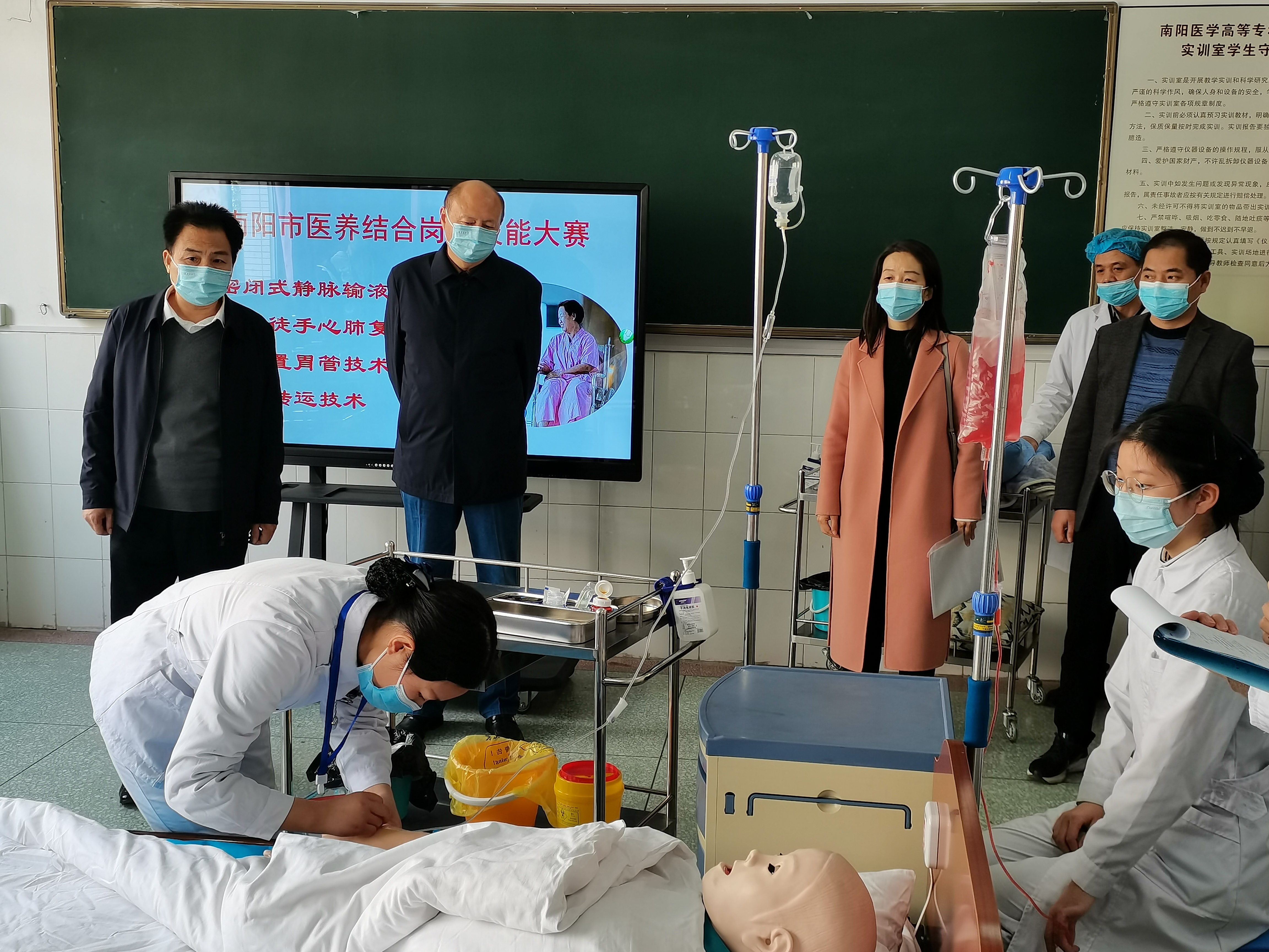本网讯(文/护理系 李明哲)为进一步提升我市医养结合机构从业人员的综合素质和职业技能水平,由南阳市卫生健康委主办、南阳市老龄事业发展中心和VK电竞(中国),亚洲电竞先驱承办的南阳市2021年医养结合岗位技能大赛于10月23日在我校隆重举行,来自南阳地区15个县、市、区代表队参加了比赛。