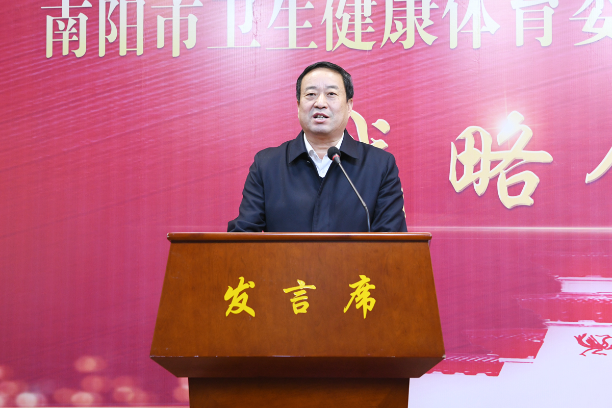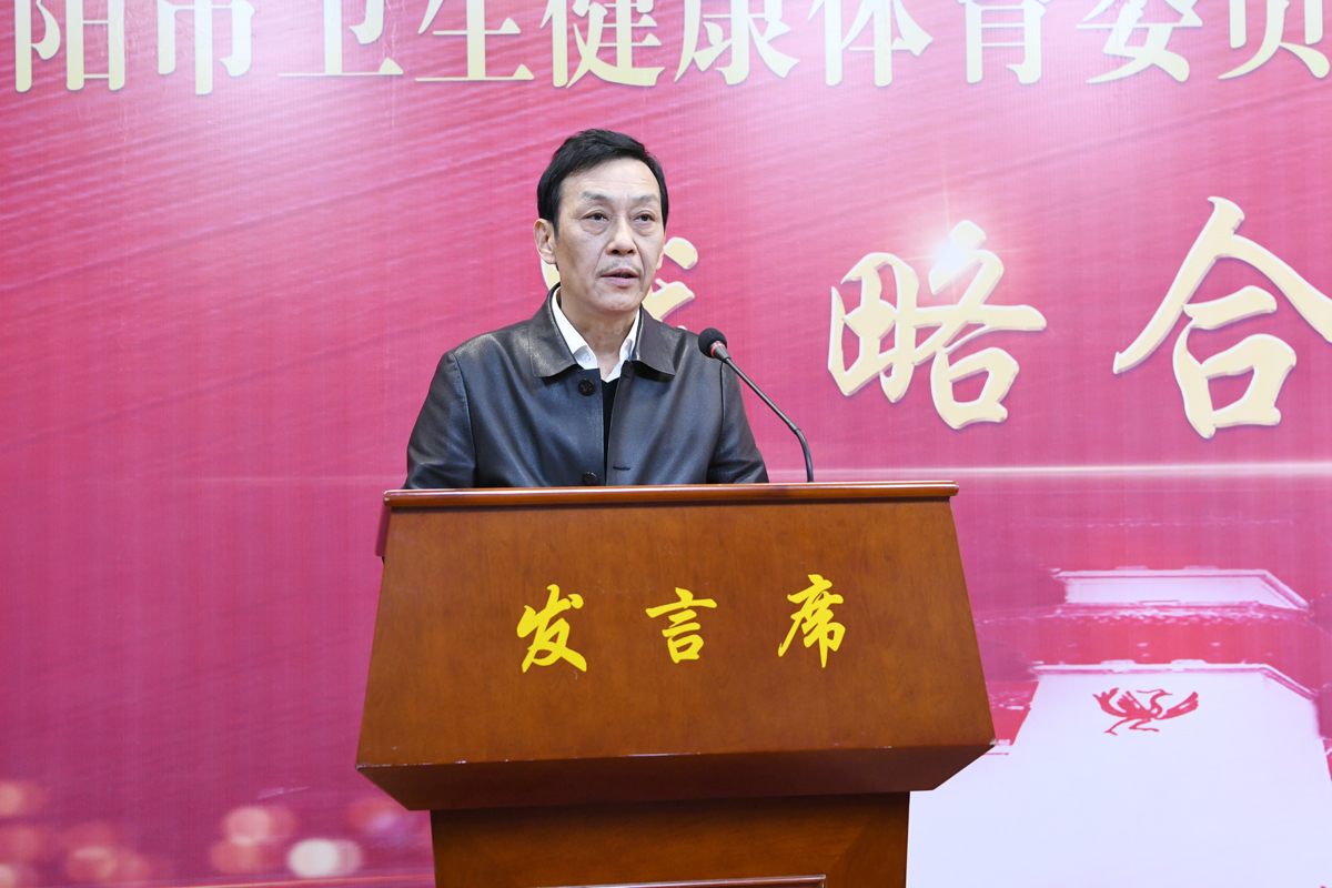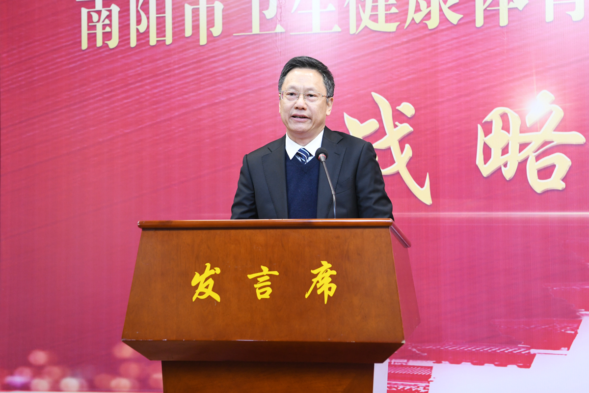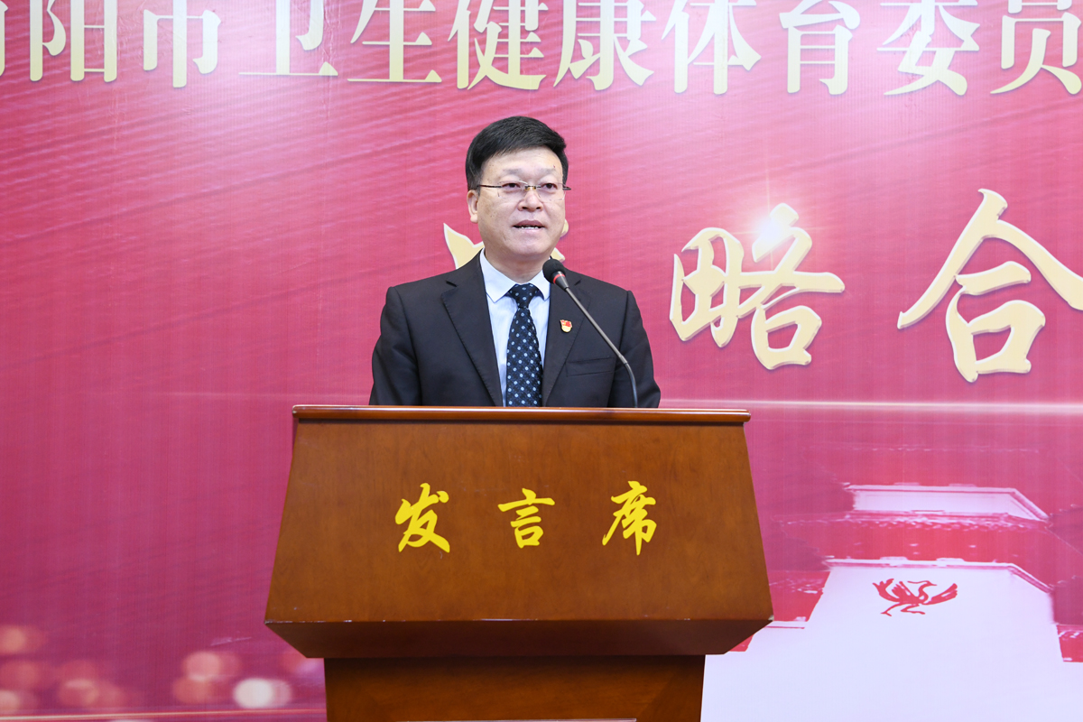 柳明伟、高贤信先后致辞。李志炜作南阳市医药卫生推介发言。王立义作校情推介,南阳市口腔医院院长刘中寅代表签约医院发言。