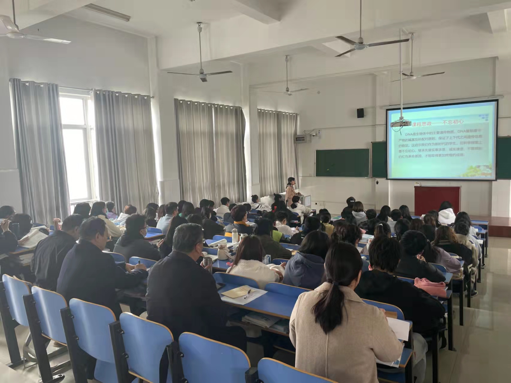 本网讯(文/国教院 田雨)为贯彻落实我校“观念能力作风建设年”工作要求,切实推进“三个联系”工作制度走深走实,推动思想政治理论课改革创新,迎接思政处“大听课、大调研”活动,校党委副书记逵应坤分别于3月17日和18日深入国际教育学院,认真听取了张文娟老师的《生物化学》课、孙梦荻和陈萌老师的《思想道德与法治》课等,对教师授课情况、学生听课、课堂管理等情况进行了解。