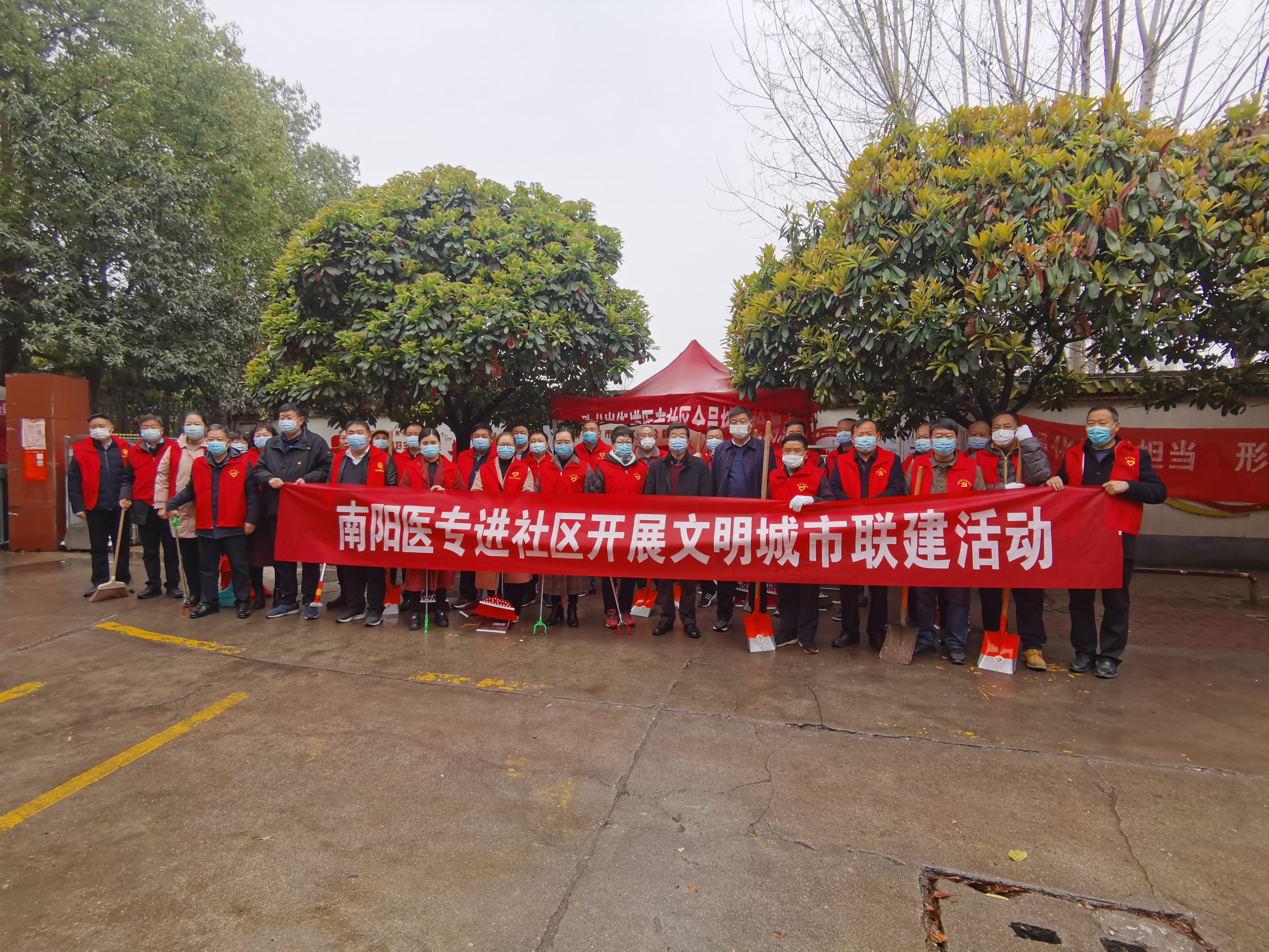 本网讯(文/总务处 卢娟)3月25日下午,我校党委委员、副校长张国良、郭万周带领30余名党员干部赴医专社区孔明校区家属院开展文明城市常态化联建活动。