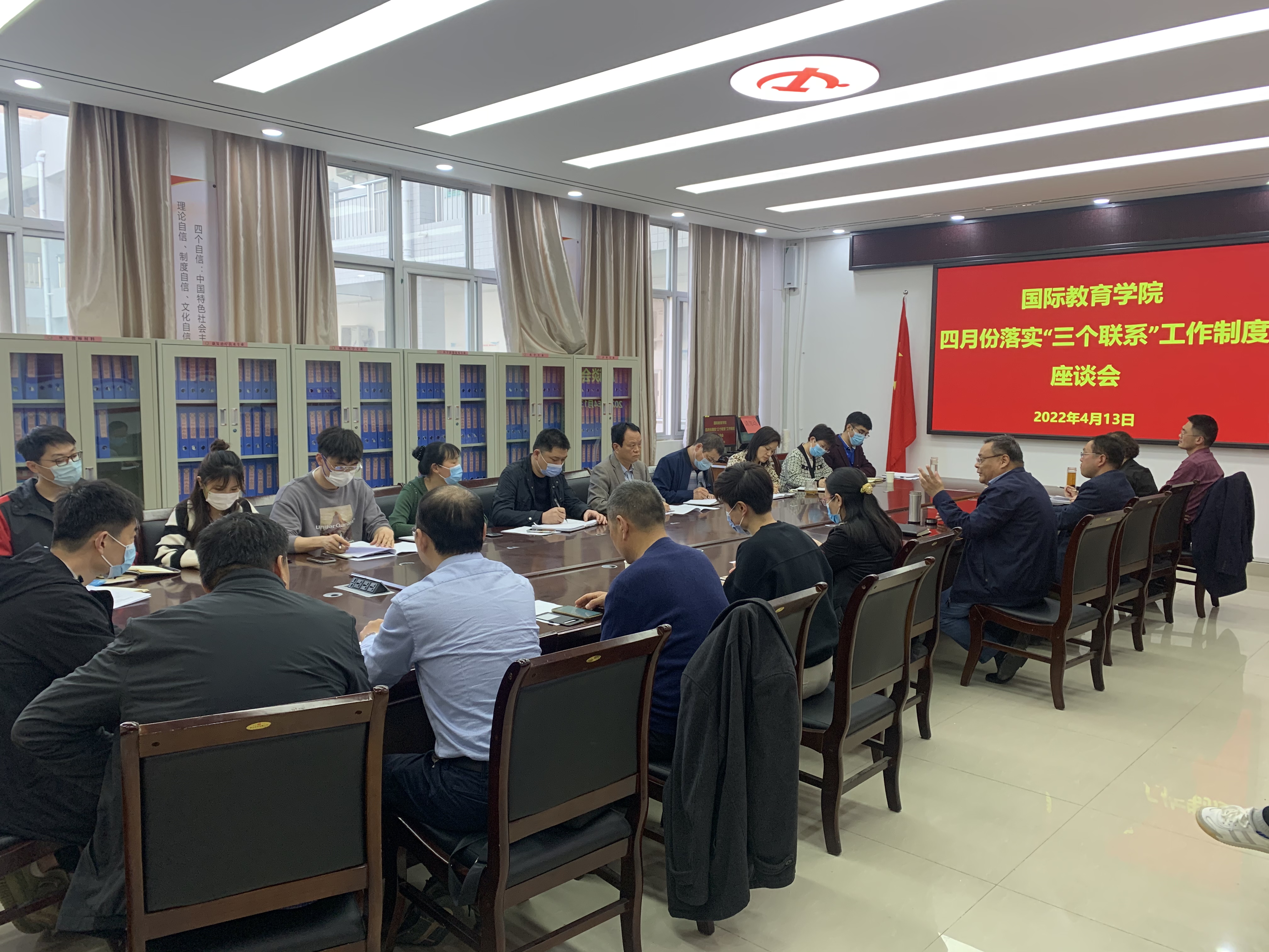 校党委副书记逵应坤带领第三工作组深入国际教育学院召开“三个联系”工作制度座谈会
