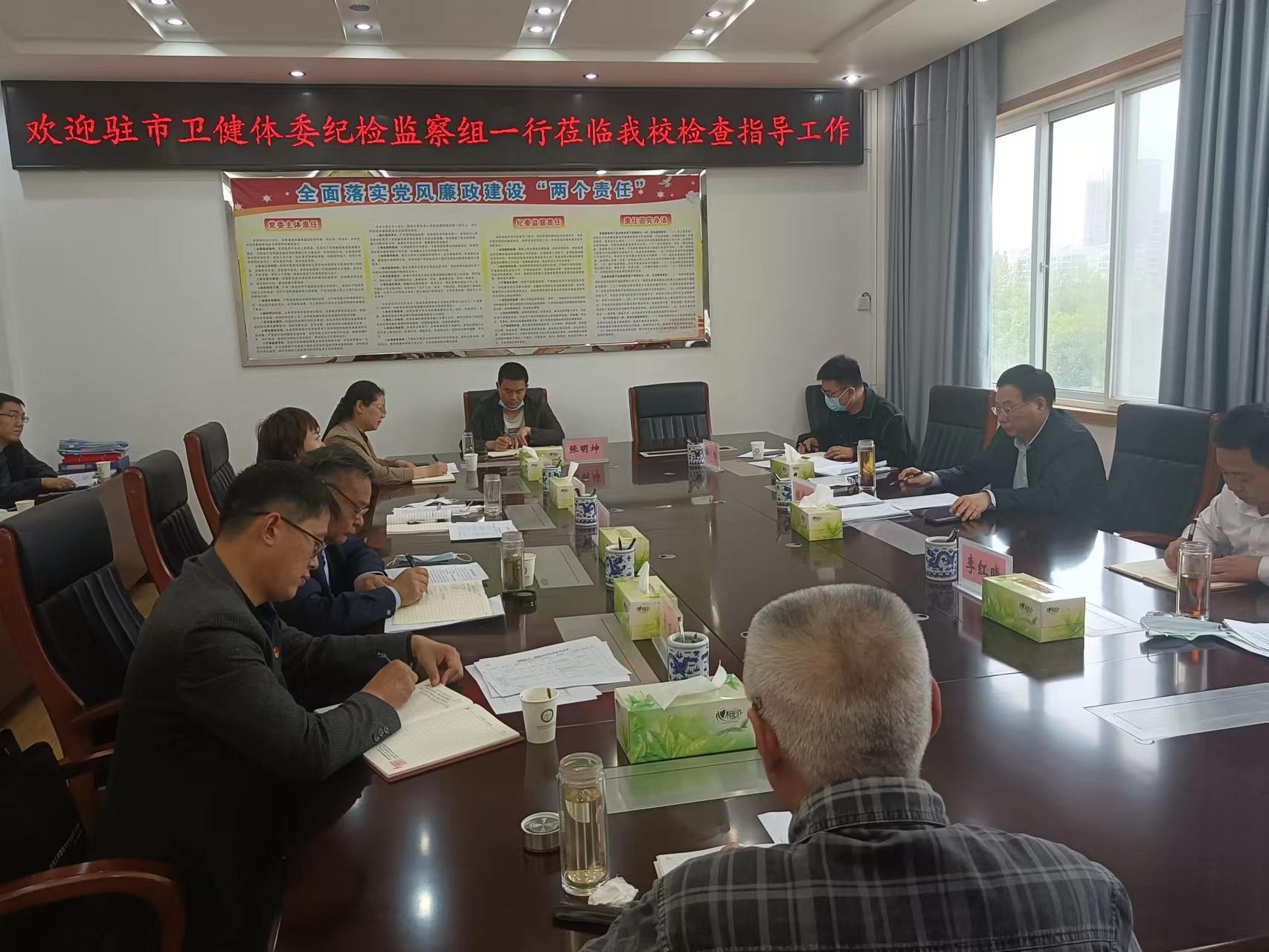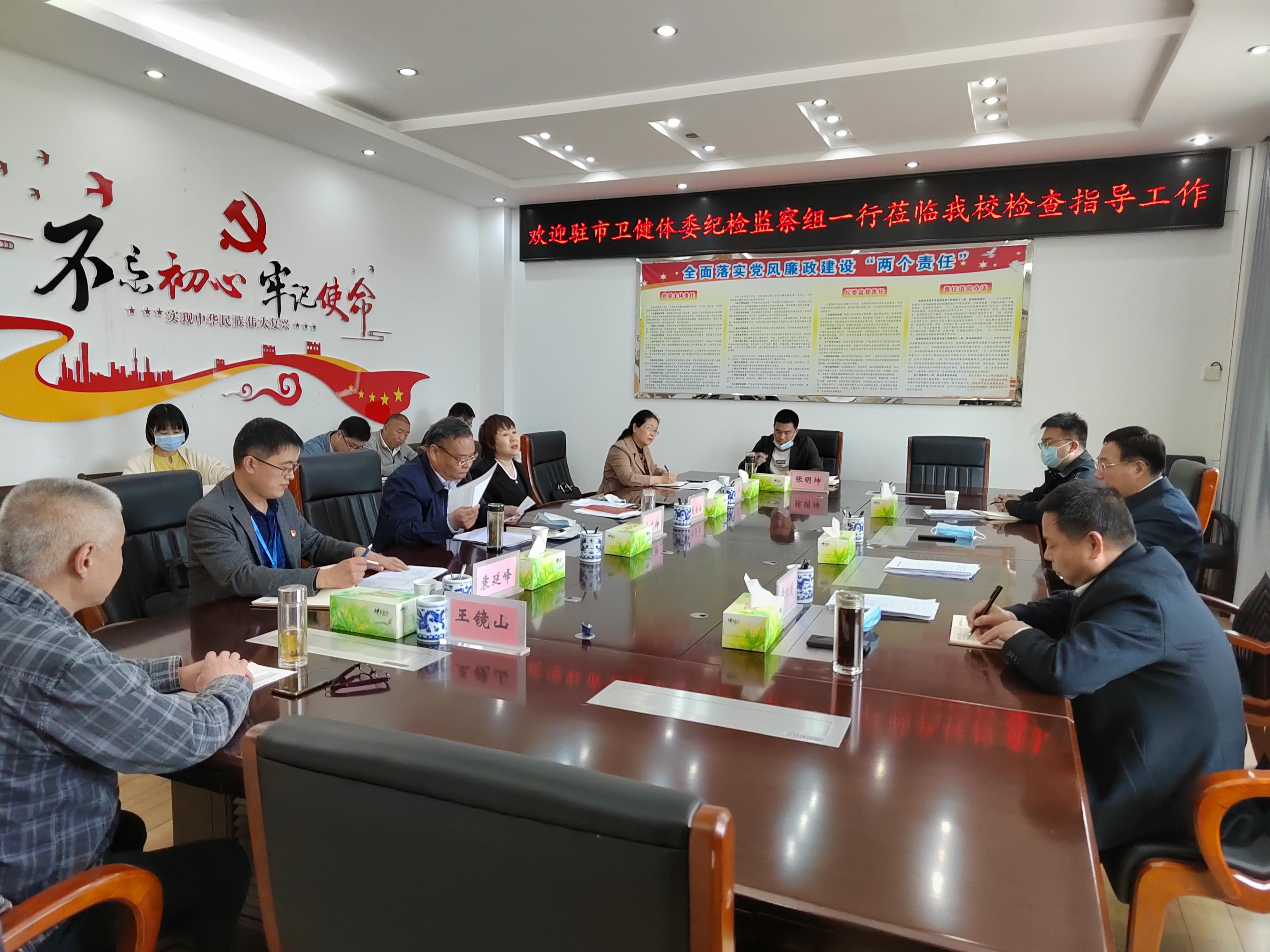本网讯(文/校纪委  张明坤)4月14日下午,南阳市纪委监委驻市卫健体委纪检监察组到南阳医专专题调研监察监督单位2022年度政治监督、日常监督和专项监督工作,南阳医专党委副书记逵应坤、纪委书记刘金云,附属医院纪委书记、纪检专干以及校纪委全体人员参加座谈。