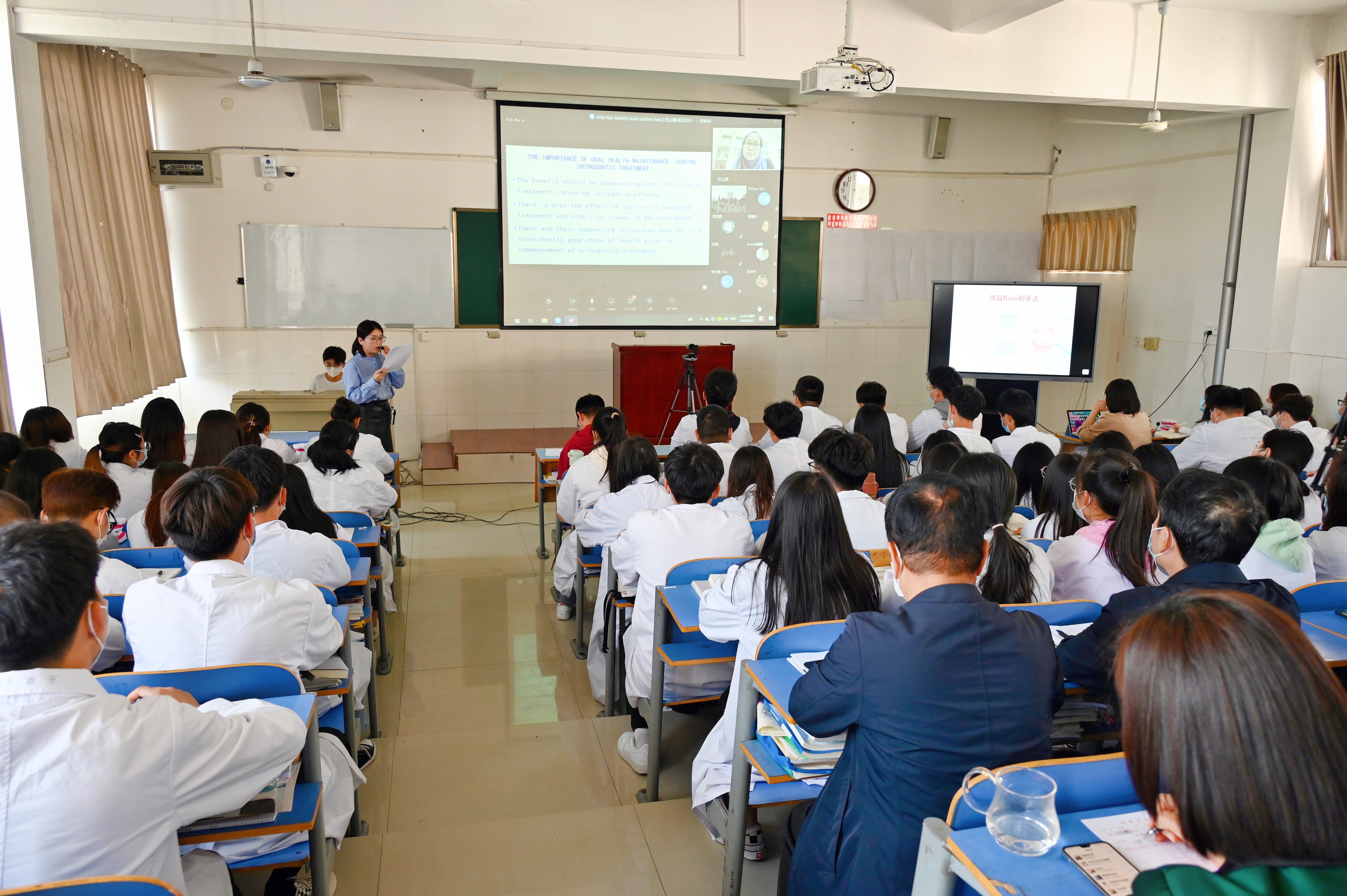 我校与马来西亚林肯大学合作办学项目口腔医学专业《生理学》《病理学与病理生理学》《口腔组织病理学》《口腔颌面外科学》《口腔内科学》《口腔修复学》《口腔正畸学》等外教课程都陆续线上直播开课,在引进外方优质教学资源为学生提供双语学习环境的同时,也对我校口腔医学专业教师进行了线上培训。课上,林肯大学Aida老师详细讲解了口腔正畸过程中的口腔健康维护,图文并茂地阐明了口腔健康维护的重要性,以及预防釉质脱矿的方法,并以一名患者的口腔状况为例,提出问题让同学们展开讨论,激发了学生的积极性,活跃了课堂氛围,语言助教简要、准确进行了同步翻译。中方口腔医学专业课教师赵雪总结了在正畸过程中的口腔健康维护方法,给学生们发放刷牙模具,教、学、做一体化动手操作改良BASS刷牙法,结合中国口腔助理执业医师资格证考点进行练习。