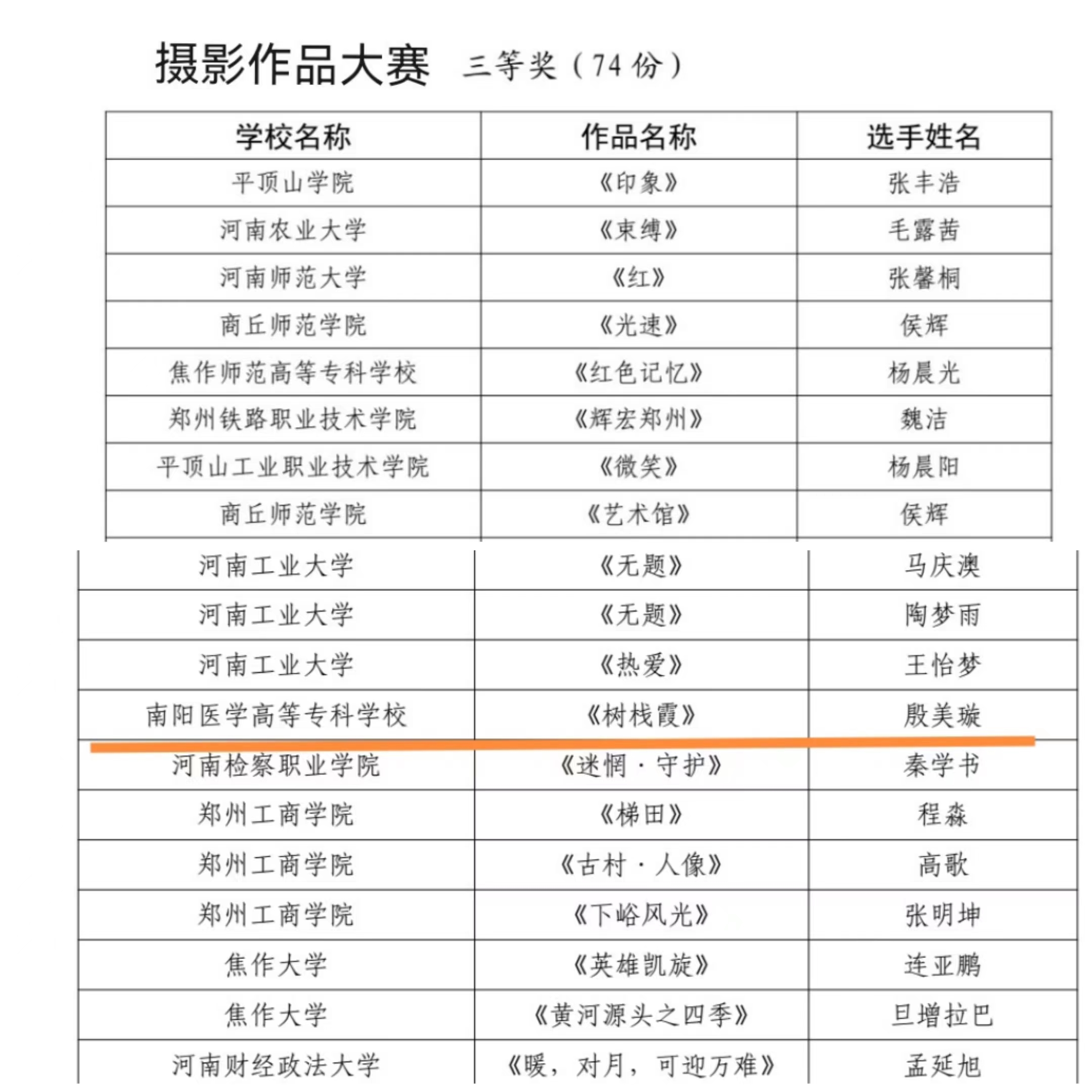 本网讯(文/团委 古婵婵)近日,中共河南省委宣传部、河南省教育厅、河南省文化和旅游厅、共青团河南省委、河南省科学技术厅、河南省学生联合会联合发布《关于发布河南省第十七届大学生网上科技文化艺术节获奖作品(个人)和优秀组织单位名单的通知》,我校成绩斐然,共10项参赛作品获奖,其中一等奖1项,二等奖3项,三等奖6项。