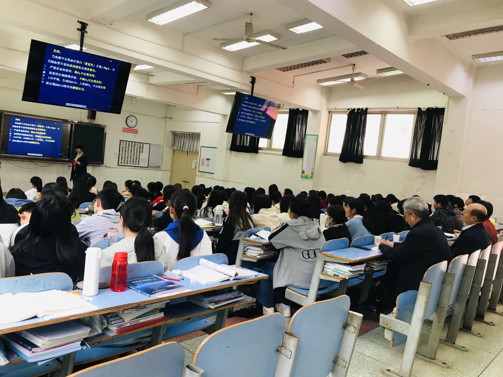 本网讯(文/护理系  何红丽)为深入贯彻落实学校“观念能力作风建设年”活动相关要求,不断强化群众观念和宗旨意识,切实推进“三个联系”工作制度走深走实,4月29日上午,校党委委员、副校长张胜海,学校质量管理办公室主任郭延东到护理系教室听课调研,护理系相关领导和同志陪同听课。