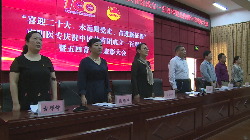 本网讯(文/校团委 庞博)2022年5月4日下午,校团委在图书馆五楼学术报告厅成功举办“喜迎二十大、永远跟党走、奋进新征程”南阳医专庆祝中国共青团成立一百周年暨五四青年节表彰大会。校党委副书记逵应坤,校党政办主任江学法,党委组织部部长杜晓平,党委宣传部部长李红普,党委学工部部长、校学生处处长梁顺平,校团委书记徐晓杰,以及各个系(部、院)团总支书记和全校团员代表参议会议。会议由校团委副书记古婵婵主持。