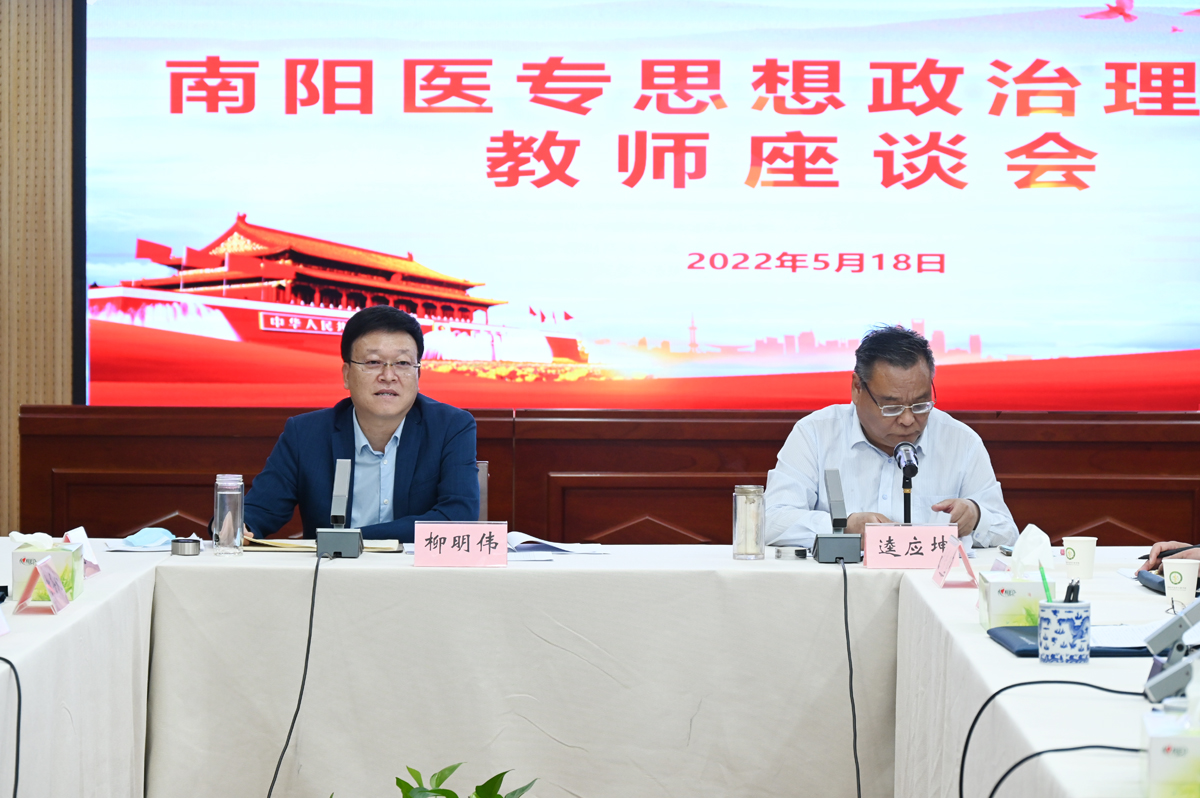 本网讯(文/马克思主义学院 雷雨泰)为更好了解掌握我校思政课建设工作情况,推进学校思政课教学与思政课教师队伍建设高质量发展,5月18日下午,党委书记柳明伟深入马克思主义学院召开学校思想政治理论课教师专题座谈会。校领导逵应坤出席并主持,党政办、宣传部、教务处、质量管理办公室等部门负责同志及全校思政课专兼职教师部分代表参加座谈会。