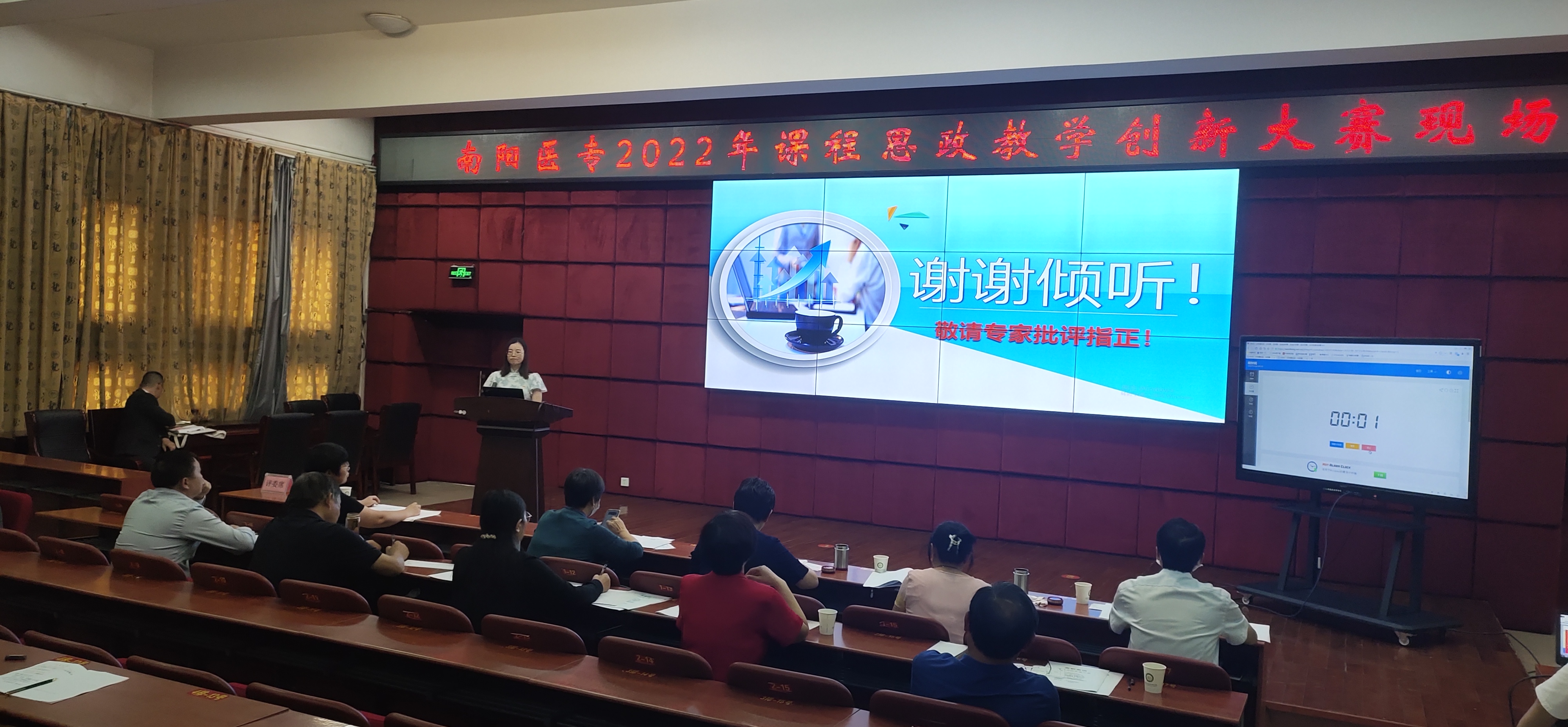 现场决赛于8月26日,在仲景西区图书馆5楼报告厅举行,采用了主会场+线上分会场的方式。学校各系(部、院)教师代表参加了活动,其他教师通过线上收看决赛直播。校党委委员、副校长范真出席活动并发表讲话,教务处处长刘荣志,各系(部、院)主任参与了本次大赛。范真在讲话中强调了课程思政的重要意义,介绍了近年来我校参加教学技能比赛相关活动的基本情况及取得的显著成绩,并对全体教师的今后发展提出了殷切希望。希望教师们以比赛平台为契机,及时总结、研讨,分享成果,共同提高。
