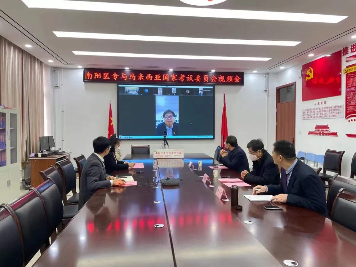 本网讯(文/对外交流合作处 夏灵果)1月4日,我校在仲景西区3号教学楼423远程会议室与英国温彻斯特大学、马来西亚国家考试委员会召开校际合作线上洽谈会。校党委委员、副校长张国良出席会议并发表致辞,温彻斯特大学国际处处长大卫先生、马来西亚国家考试委员会主任西西女士分别通过Microsoft Teams meeting、腾讯会议线上参会,国际教育学院院长李弋及对外交流合作处工作人员参加。会议由对外交流合作处处长范卫杰主持。